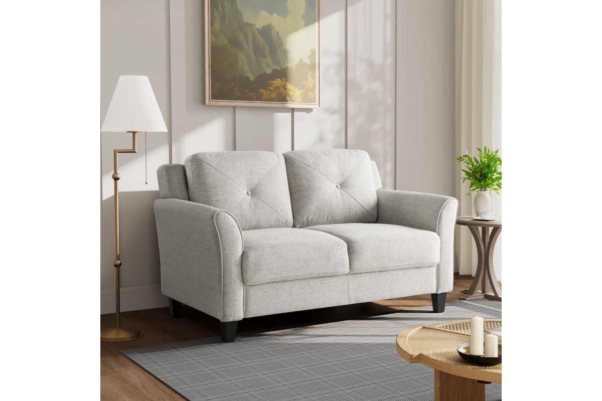 The Hailey Loveseat is designed to fit your space and style. Built for lasting quality, the Hailey combines form, function and ease of assembly designed for the eclectic life. The design lines and scale of the Hailey Loveseat brings a modern touch to spaces large and small with versatile elegance. High density foam cushions with rolled arms and beautifully button tufted back hug your body with comfort and is poised to transform any room into your favorite place to let go of the day and relax in pure bliss. Combining premium microfiber upholstered fabric and solid wooden frame, this durable plush loveseat invites you to rest in the knowledge of years of enjoyment to come. Asembly is required upon delivery.