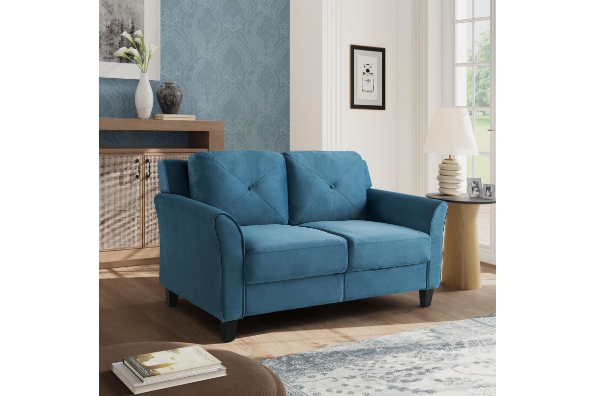 The Hailey Loveseat is designed to fit your space and style. Built for lasting quality, the Hailey combines form, function and ease of assembly designed for the eclectic life. The design lines and scale of the Hailey Loveseat brings a modern touch to spaces large and small with versatile elegance. High density foam cushions with rolled arms and beautifully button tufted back hug your body with comfort and is poised to transform any room into your favorite place to let go of the day and relax in pure bliss. Combining premium microfiber upholstered fabric and solid wooden frame, this durable plush loveseat invites you to rest in the knowledge of years of enjoyment to come. Asembly is required upon delivery.