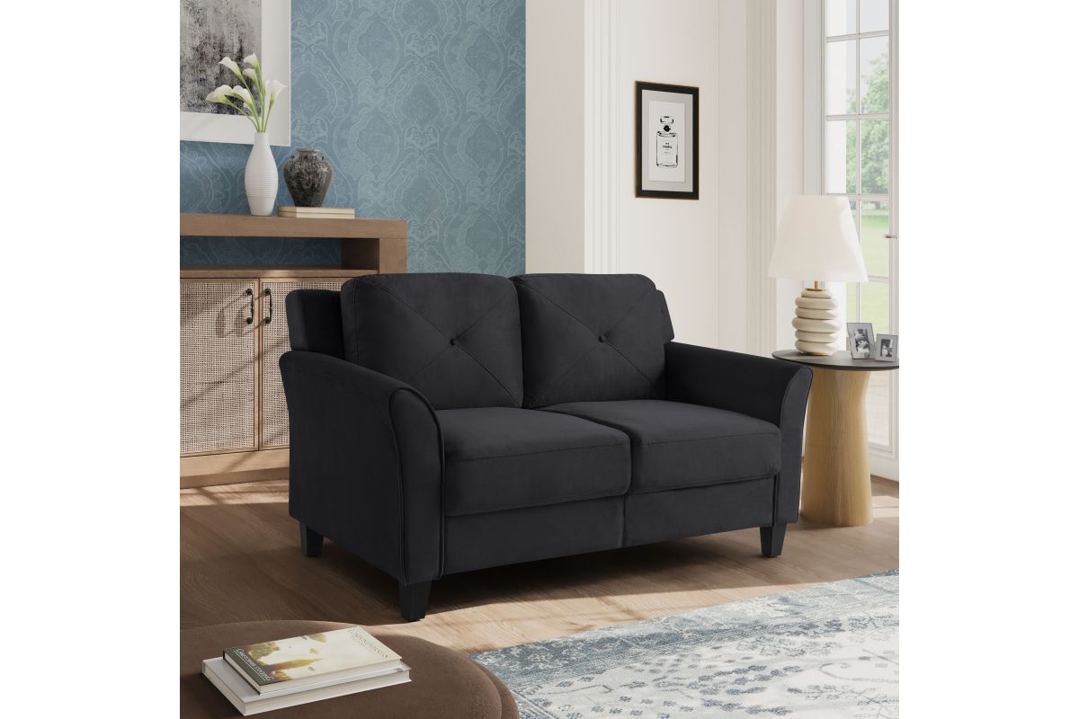 The Hailey Loveseat is designed to fit your space and style. Built for lasting quality, the Hailey combines form, function and ease of assembly designed for the eclectic life. The design lines and scale of the Hailey Loveseat brings a modern touch to spaces large and small with equal elegance. High density foam cushions and curved arms hug your body and is sure to become your favorite place to let go of the day and relax in pure comfort. Combining premium upholstered fabric and solid wooden frame, this durable plush Loveseat invites you to rest in the knowledge of years of enjoyment to come. Asembly is required upon delivery.