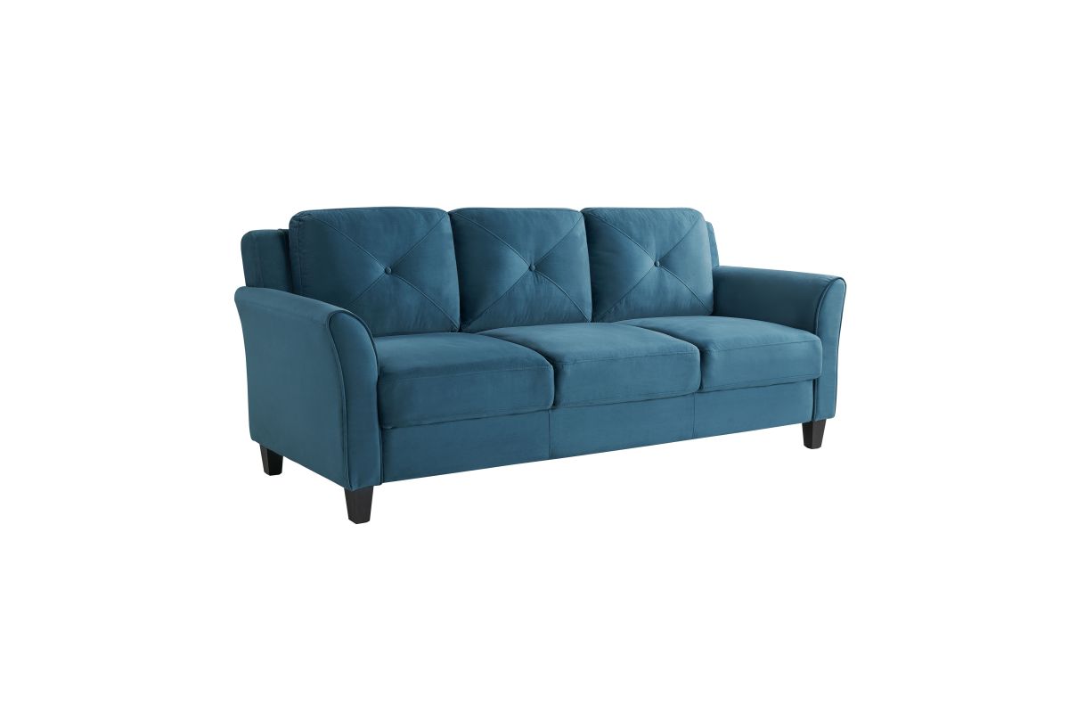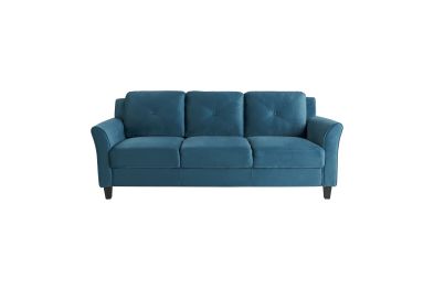 The Hailey Sofa is designed to fit your space and style. Built for lasting quality, the Hailey Sofa combines form, function and ease of assembly designed for the eclectic life. The design lines and scale of the Hailey brings a modern touch to spaces large and small with versatile elegance. High density foam cushions with rolled arms and beautifully button tufted back hug your body with comfort and is poised to transform any room into your favorite place to let go of the day and relax in pure bliss. Combining premium upholstered fabric and solid wooden frame, this durable plush sofa invites you to rest in the knowledge of years of enjoyment to come. Asembly is required upon delivery.