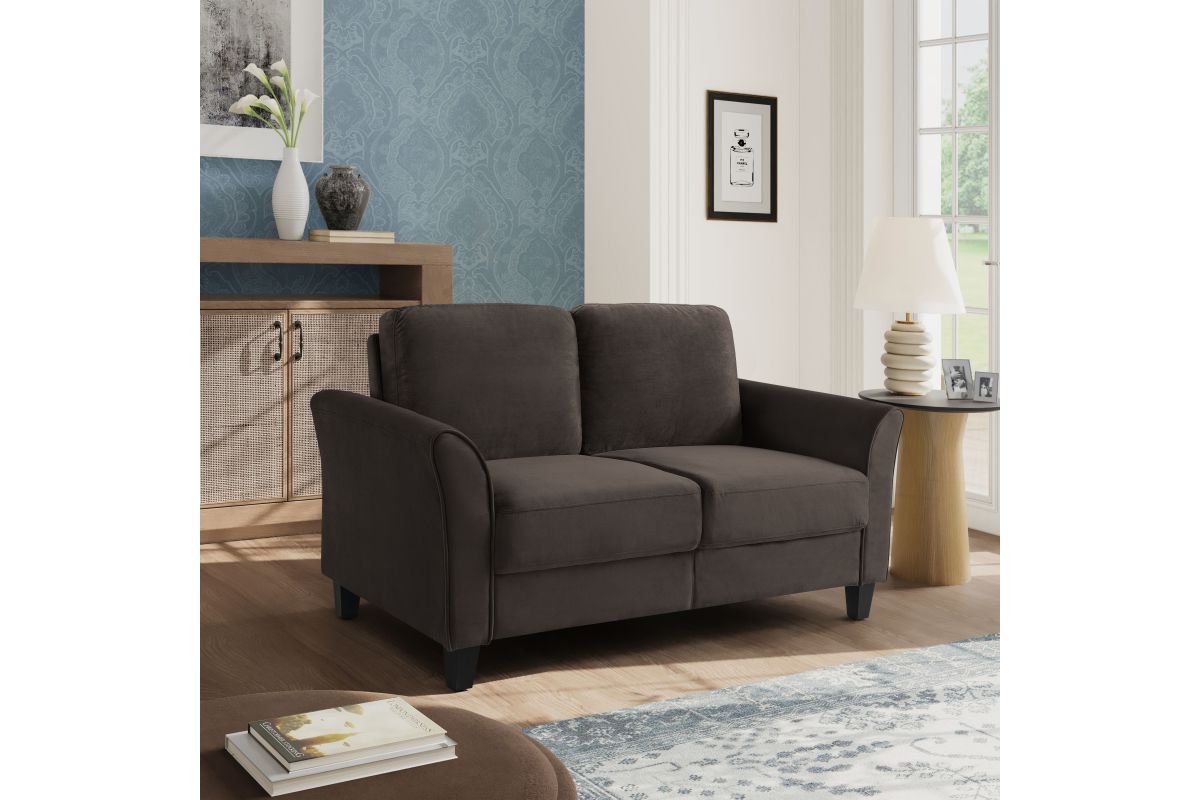 Introducing our exquisite Westfield Loveseat with Curved Arms in a Coffee Microfiber Fabric. Experience the perfect blend of elegance, comfort, and style with this stunning addition to your living space. Crafted with meticulous craftsmanship, this loveseat features beautifully curved arms that add a touch of sophistication to any room. The rich coffee color of the microfiber fabric upholstery creates a warm and inviting ambiance that complements various decor styles. Indulge in supreme comfort as you sink into the plush cushions of this loveseat. The microfiber fabric offers a soft and luxurious feel, making it the perfect spot to relax, cuddle up, or enjoy quality time with your loved ones. Built to withstand the test of time, this loveseat boasts a sturdy frame that ensures durability and stability. The compact size is ideal for smaller spaces, making it a versatile choice for apartments, condos, or cozy living rooms. Upgrade your living space with our Loveseat with Curved Arms in a Coffee Microfiber Fabric. Don't miss out on the opportunity to add elegance and comfort to your home. Asembly is required upon delivery.