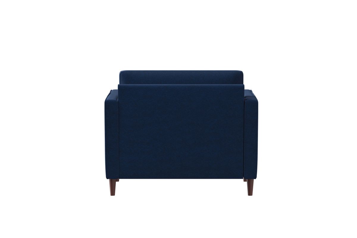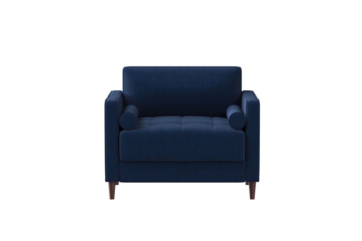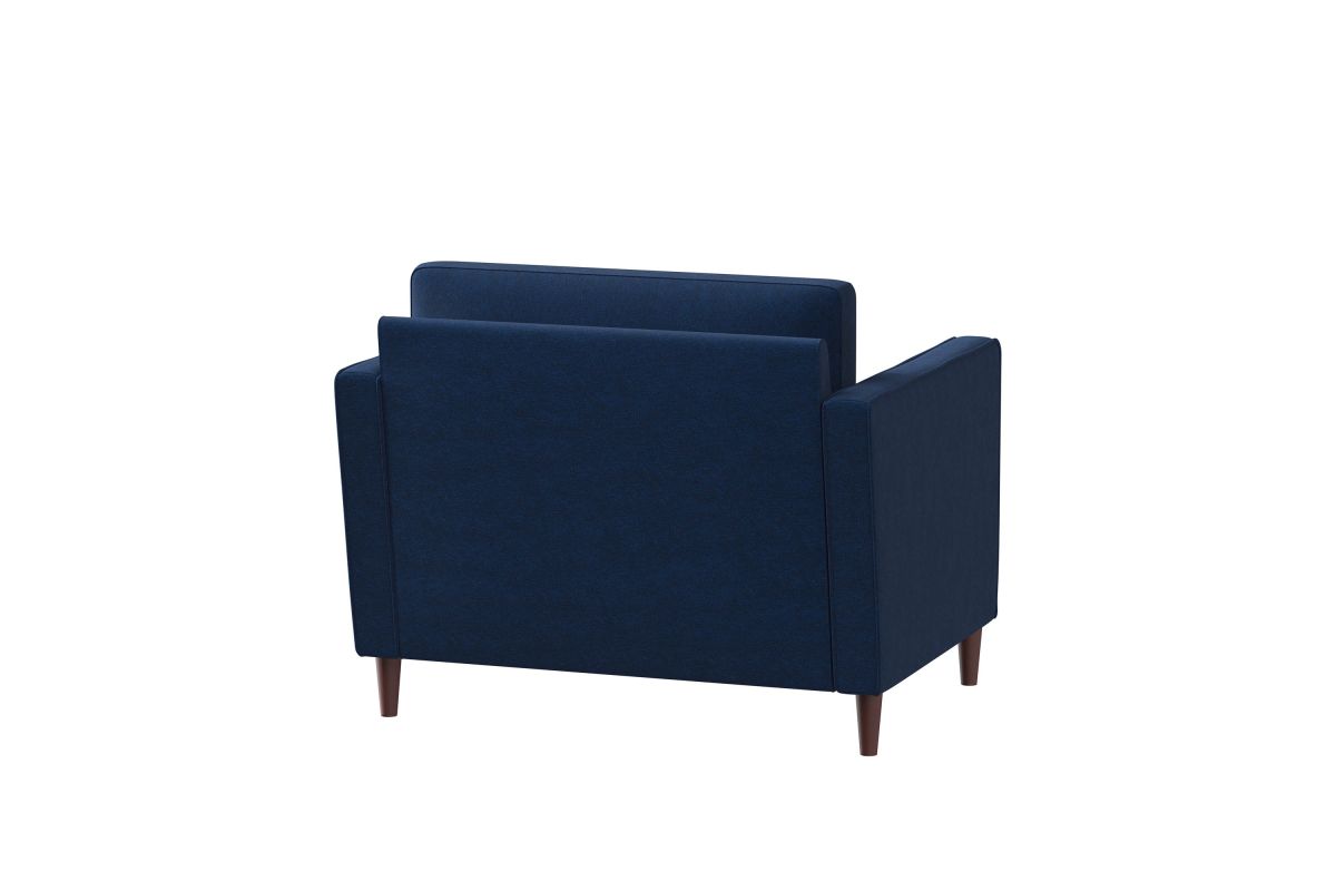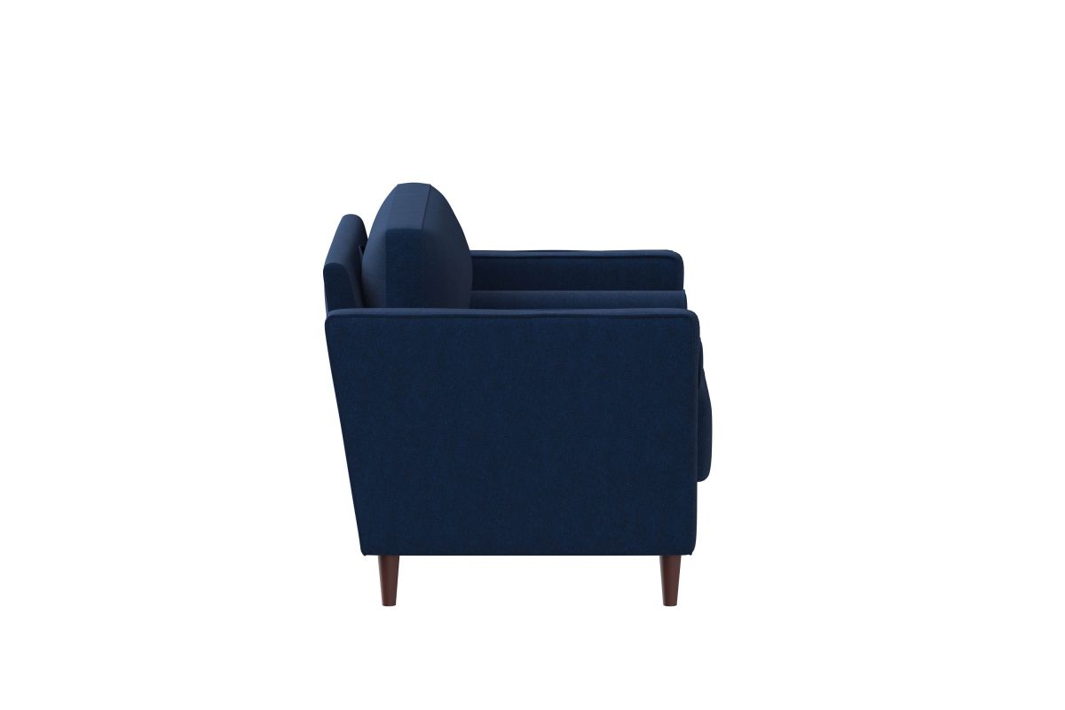 The Langdon Chair brings together minimalistic style and functionality in this beautifully designed collection. The Langdon’s compact profile makes it ideal for small spaces, constructed with a solid hardwood frame and black solid wood legs. Additionally, the Langdon is fitted with tufted high density foam seat cushions with pocket Dream Coils construction, removable back cushions and high performance upholstery. This inviting chair epitomizes lasting quality and comfort, upholstered in highly durable navy blue fabric this stunning piece is the focal point of any room big or small. Easy to clean, the Langdon will keep secret any spills from game night and last for years. Made to be lived-in, you will love this chair from first sight but in time it is sure to become the family’s "comfy place" to relax and lounge. Asembly is required upon delivery.