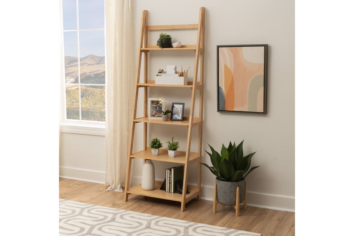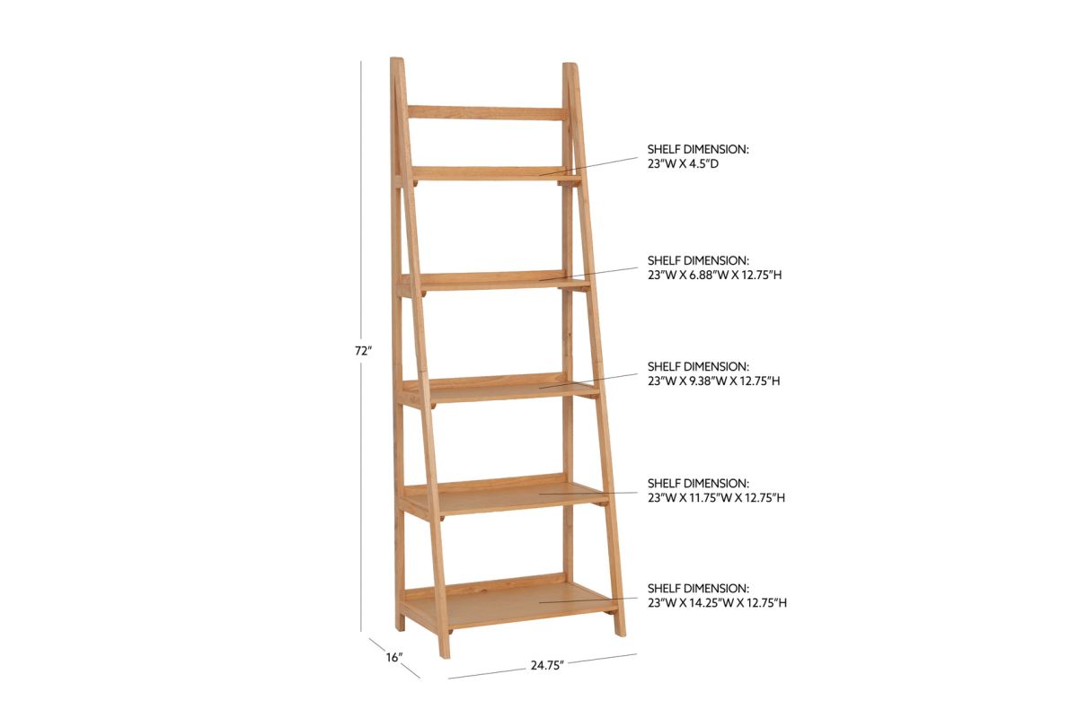 Bring warmth and natural elegance to your home with this stunning bookcase finished in a rich natural stain. Made from solid rubberwood and MDF with birch veneer, it pairs beautifully with our natural stain desk for a cohesive, inviting look. The five shelves gradually expand in size from top to bottom, offering versatile storage options for books, decorative accents, or keepsakes. The natural stain finish highlights the wood's rich texture, adding an organic touch to your room. Built to last, this bookcase is both functional and stylish, making it a perfect addition to any modern home or office.