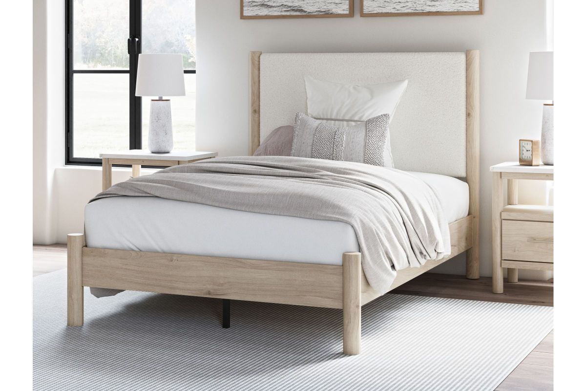 Transform your bedroom with this full upholstered panel bed. With clean lines and textured fabric, it exudes a minimal and sophisticated boho style. Tailor your space and create the perfect environment for sweet dreams. Assembly required