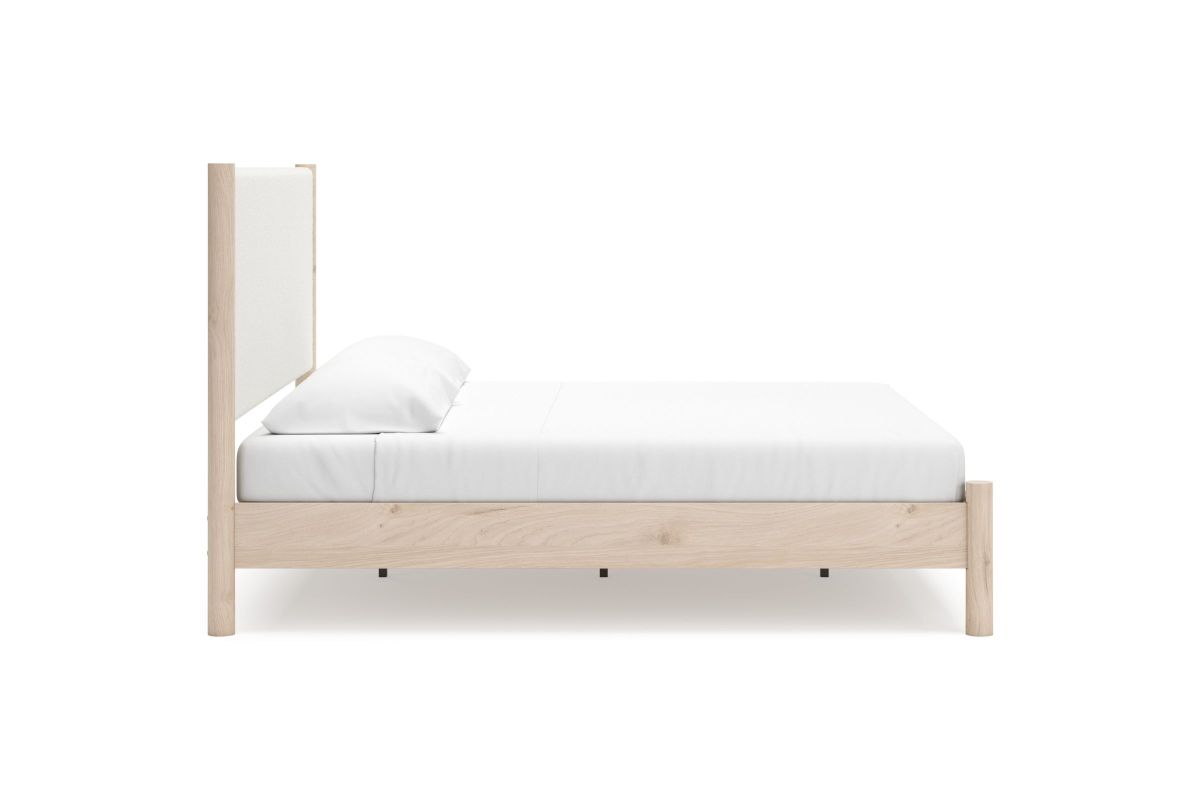 Transform your bedroom with this king upholstered panel bed. With clean lines and textured fabric, it exudes a minimal and sophisticated boho style. Tailor your space and create the perfect environment for sweet dreams. Assembly required.