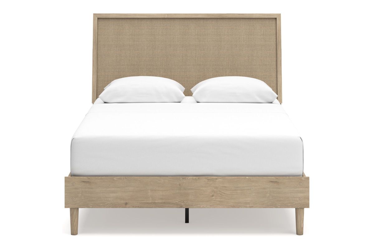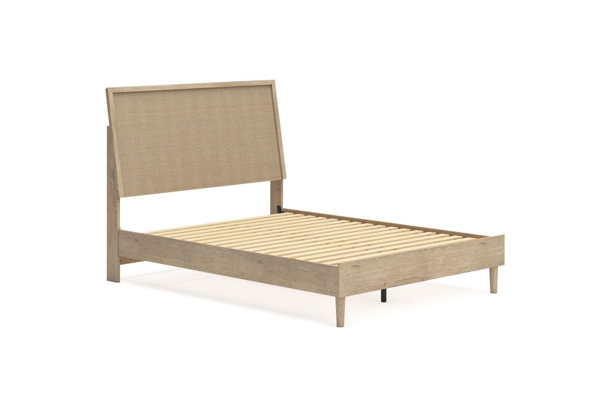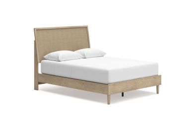 Clean-lined and contemporary, but far from stark, the Cielden queen panel bed is a fresh style awakening. Pairing a light finish with replicated oak grain and textured beige cane details, its mixed materials bring a naturally versatile vibe to your bedroom. Talk about style with added dimension. Its simplicity plays perfectly with the modern aesthetic and calming mood you long for in your tranquil retreat. Assembly required.