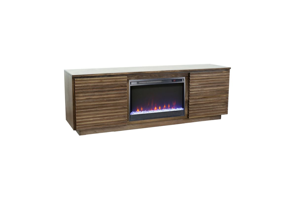 The Stardust 72" Fireplace TV Stand combines sleek design and functionality to enhance any modern living space. It supports TVs up to 100" and offers organized storage with cable management for media devices. The unit includes a 42" fireplace insert, featuring both crystal rocks and a traditional log set, perfect for creating a cozy atmosphere during your entertainment sessions.