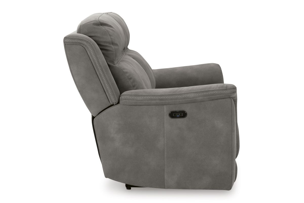 It�s time to rethink the way you relax�and time to experience the joys of this power reclining sofa. Taking a fashion-forward approach to the art of relaxation, the sofa�with a one-touch power control and an energy-efficient USB plug-in�will elevate your style and raise your standard of living. Its zero-gravity mechanism and extended ottoman offer added comfort. And talk about low maintenance. This designer recliner is wrapped in durable upholstery that�s water-repellent and family-friendly. Assembly required.