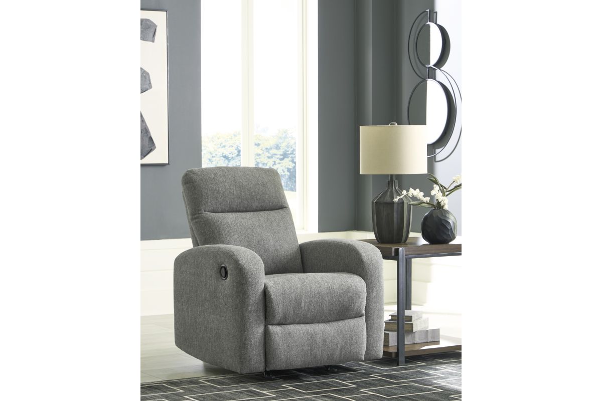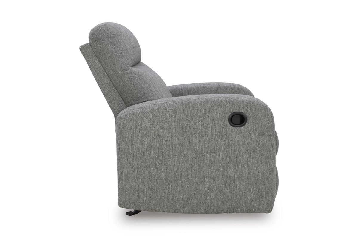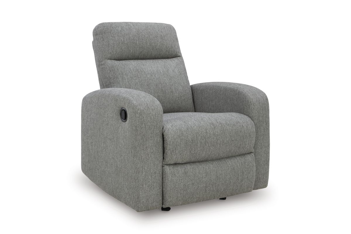 Everyday relaxation, made easy. This recliner takes you back to the basics with simply stylish comfort. With an easygoing neutral hue and classic design, it seamlessly adapts to your living room aesthetic. Pull tab reclining effortlessly takes you from seated to stretched out. No assembly is required.
