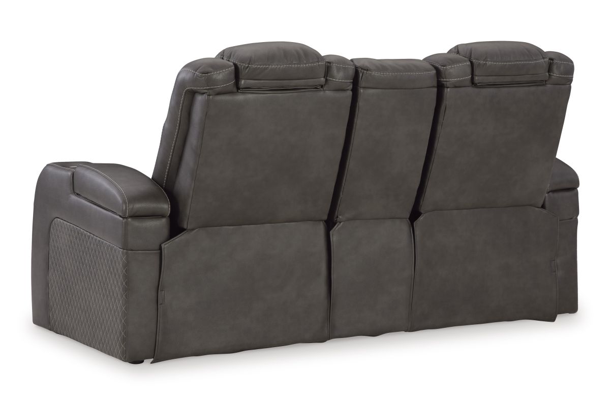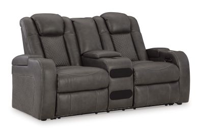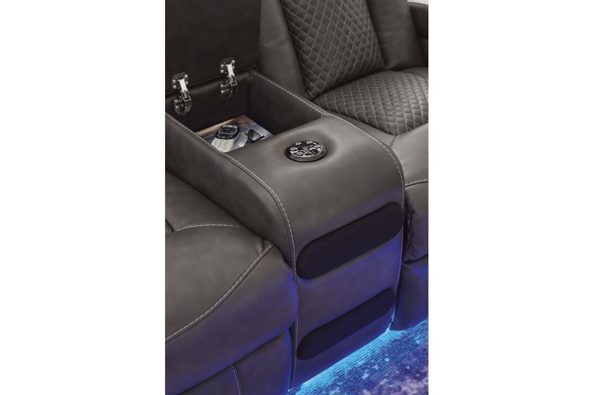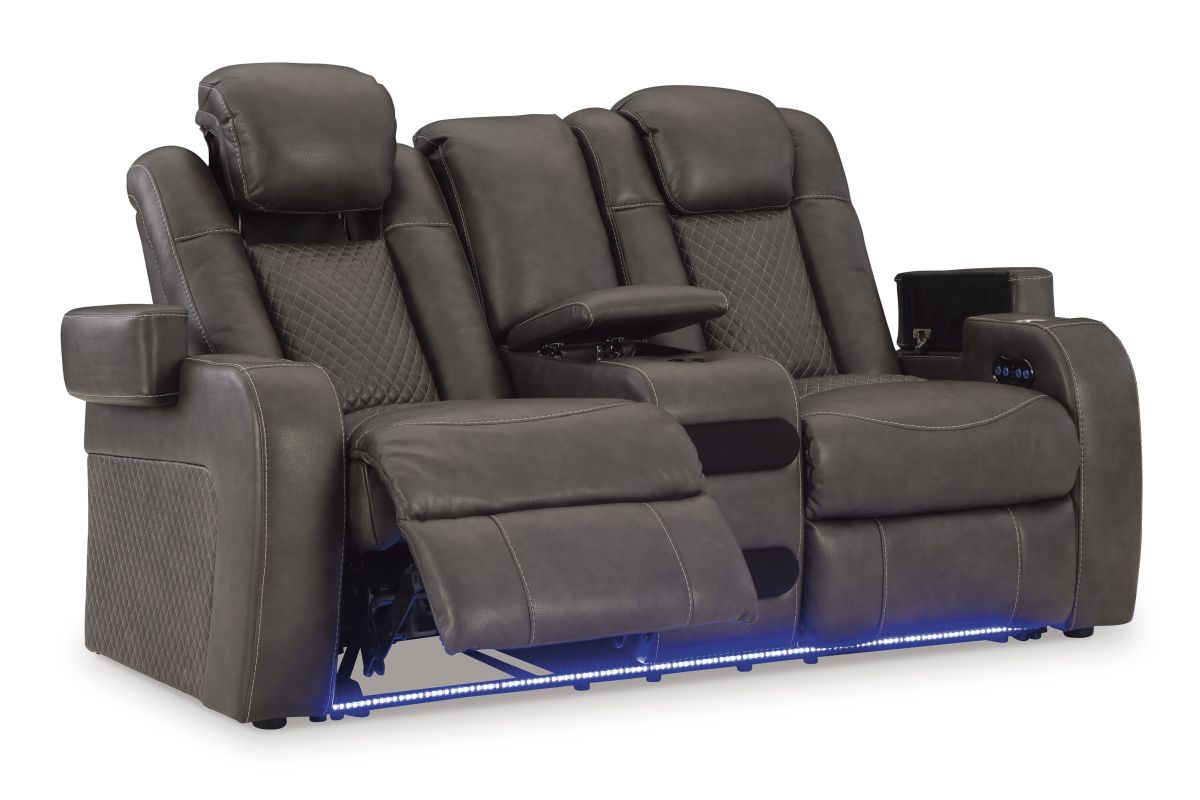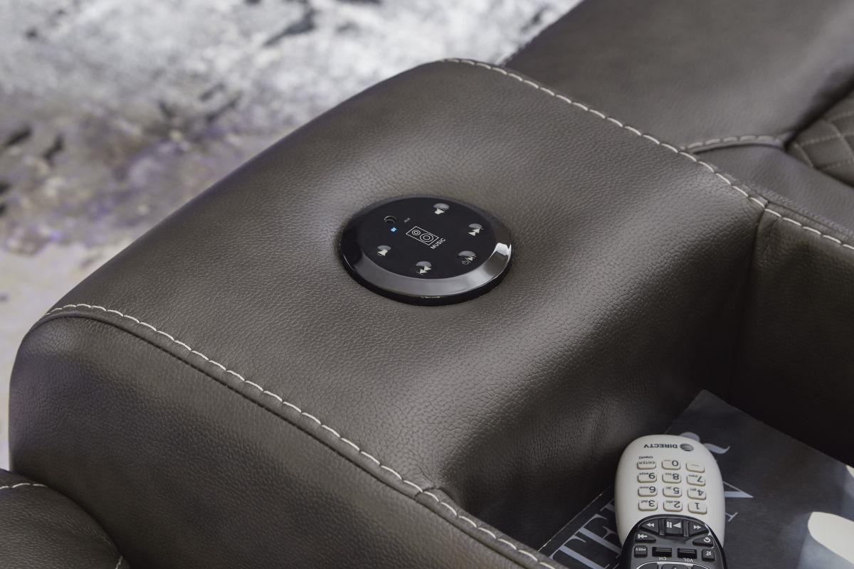 This power reclining loveseat goes beyond basic comfort. It upgrades the everyday, turning your living room into an entertainment hub. Don’t want to leave your seat? Keep essentials in reach with cup holders and storage arms. You can create an even cooler vibe for family movie nights and friendly gaming matches with LED lights. Immerse yourself further with built-in wireless audio connectivity. And your sleek style isn’t compromised—its diamond stitching and streamlined arms recall the aesthetics of luxury automobiles. No assembly required.