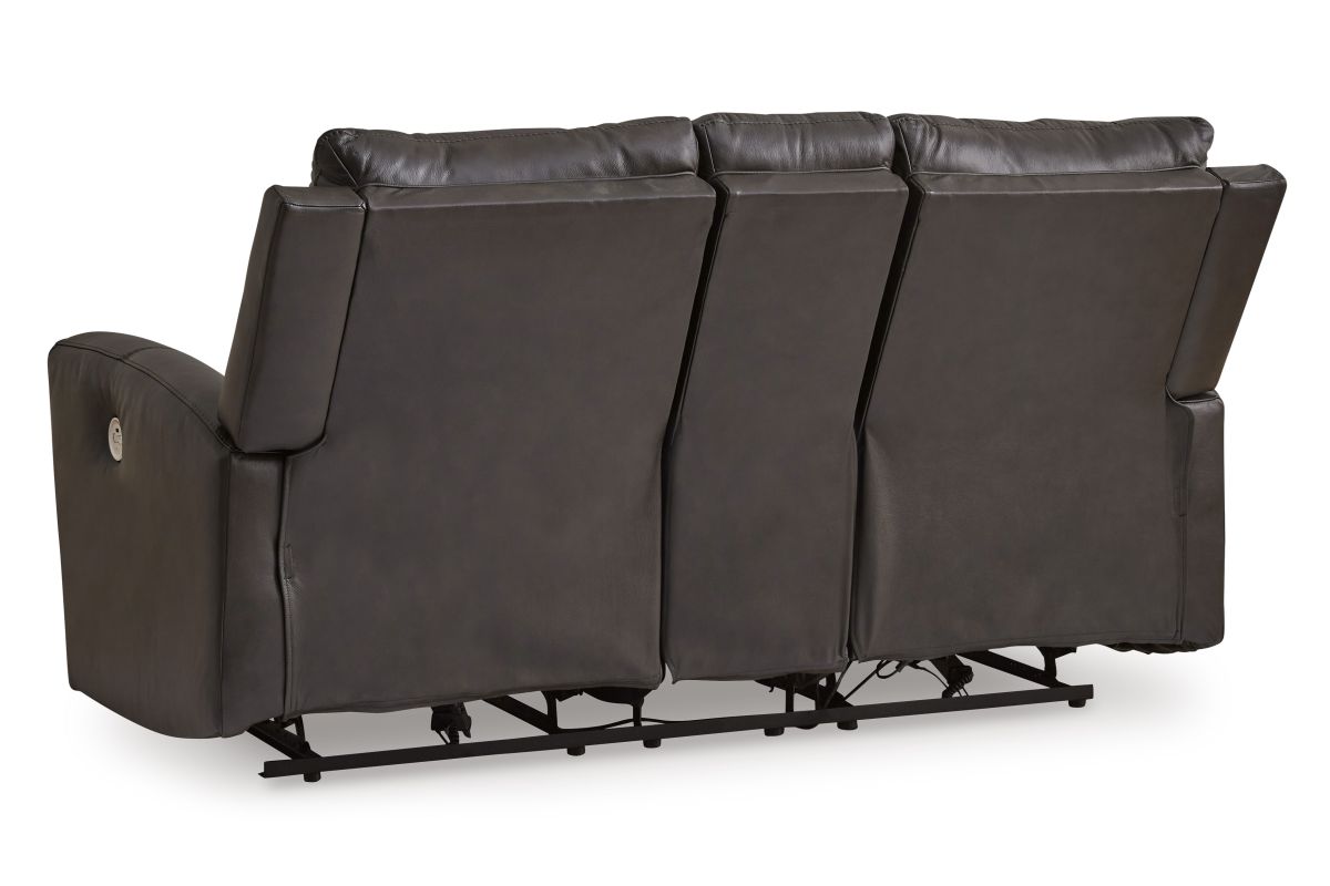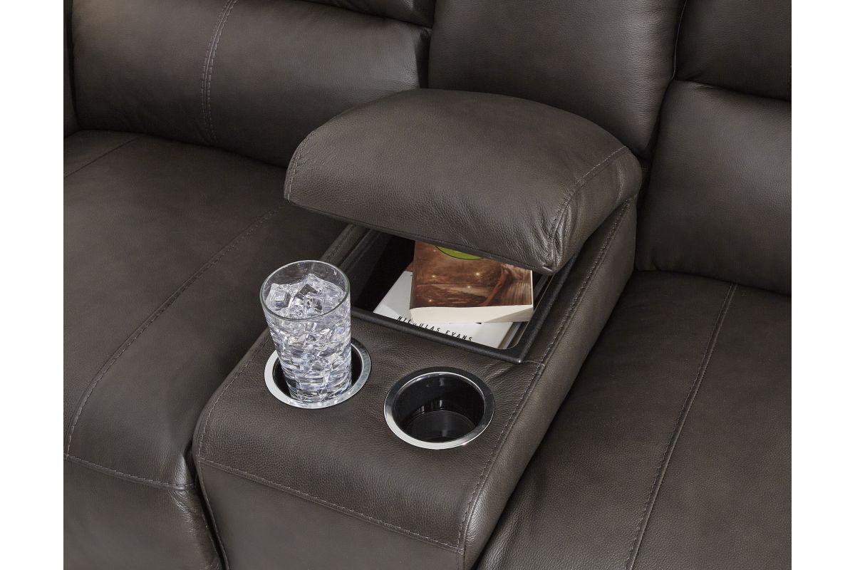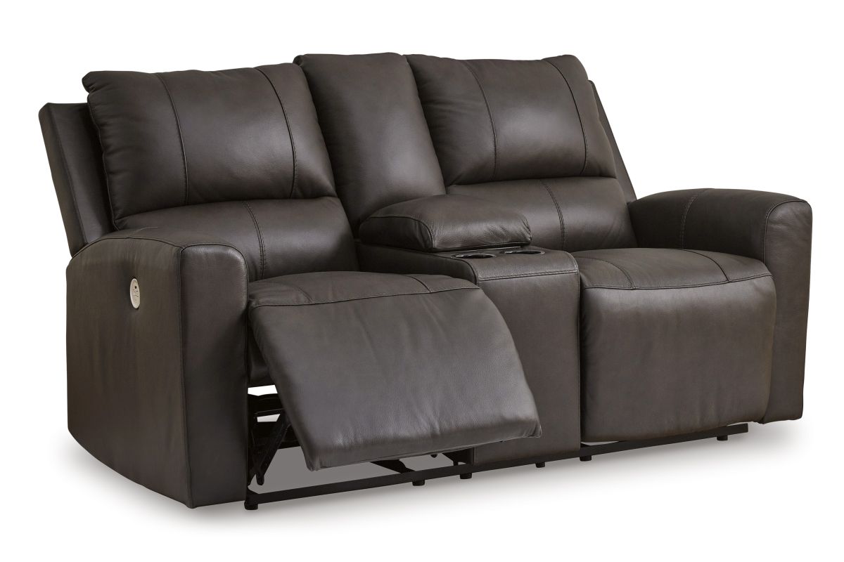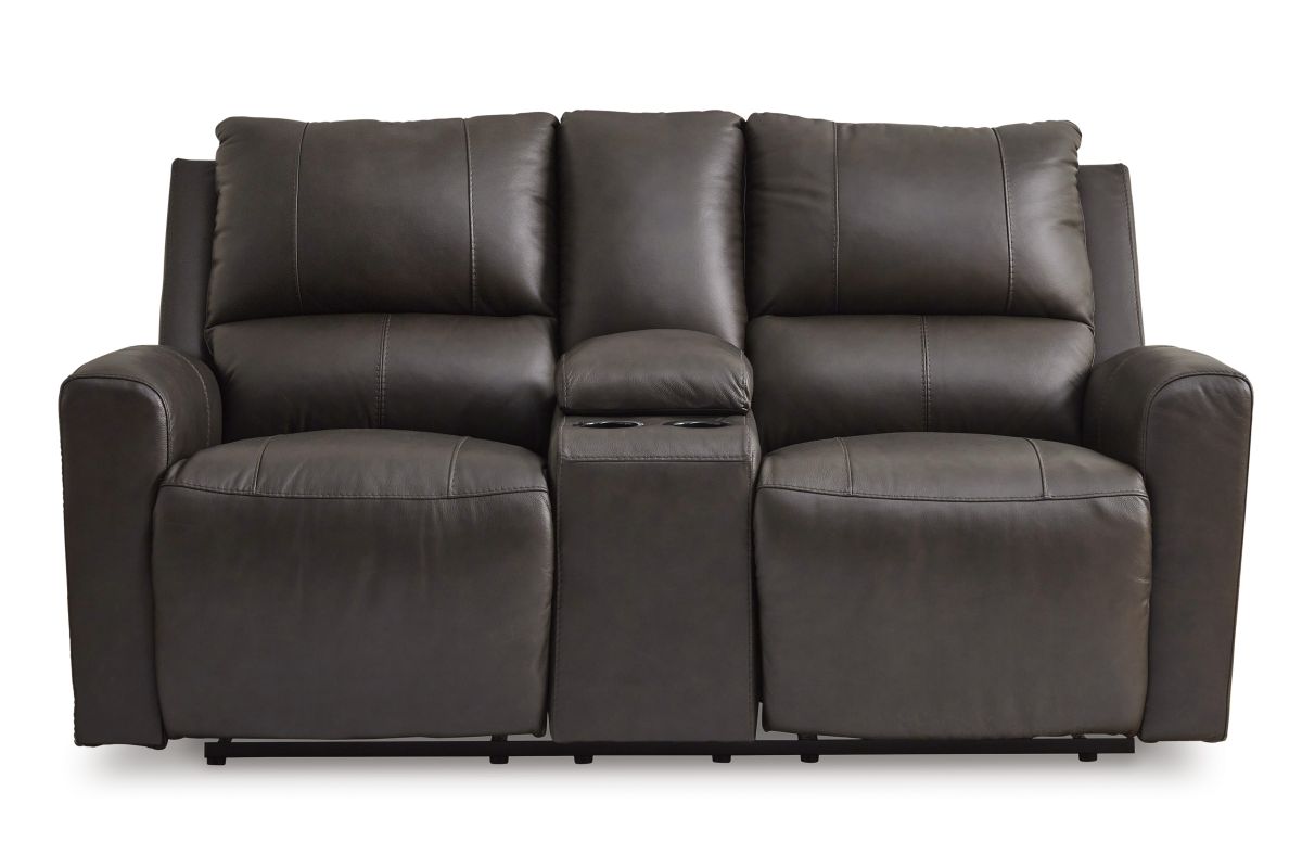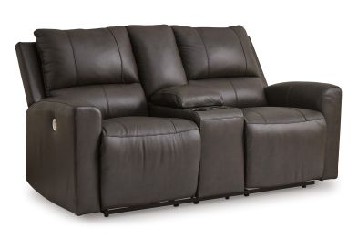 Experience modern luxury with this power reclining loveseat with console. The soft-to-the-touch leather and faux leather upholstery brings ultimate relaxation at a price you can afford. With sleek arms and a plush, pillowy back, the loveseat merges comfort and support with a high-style design. No assembly required.