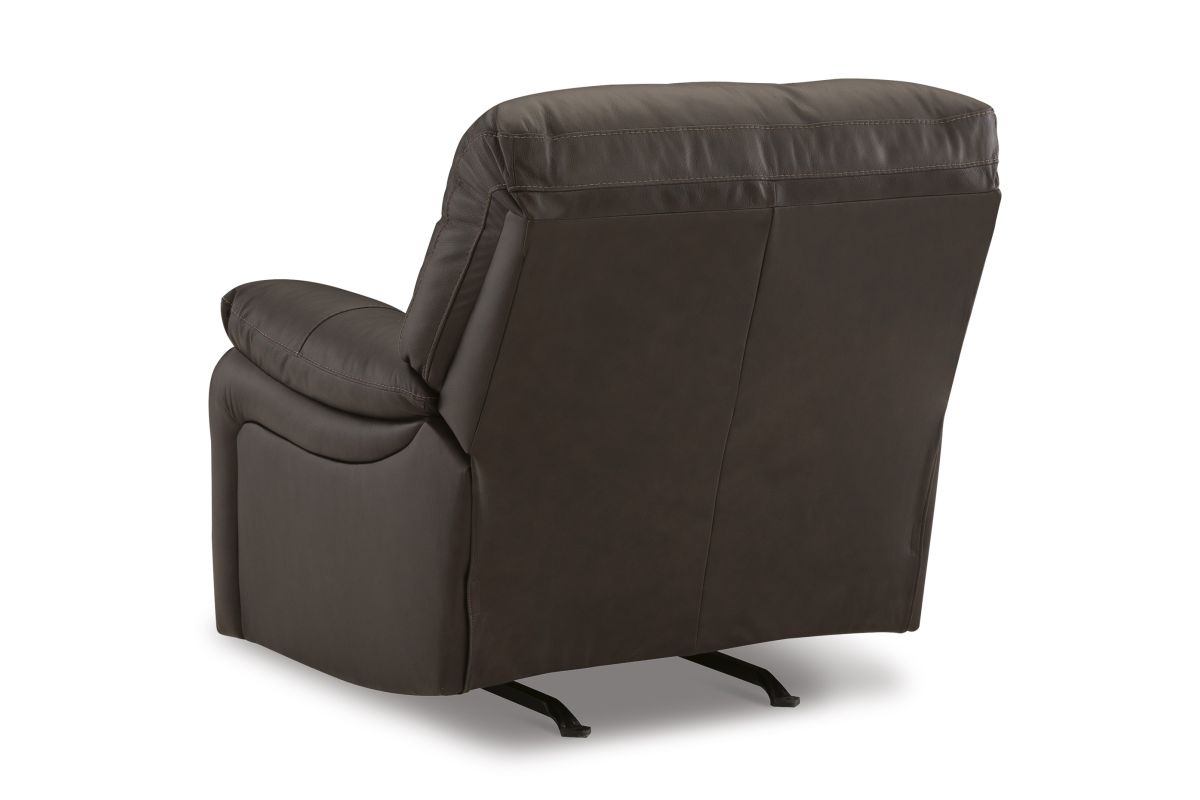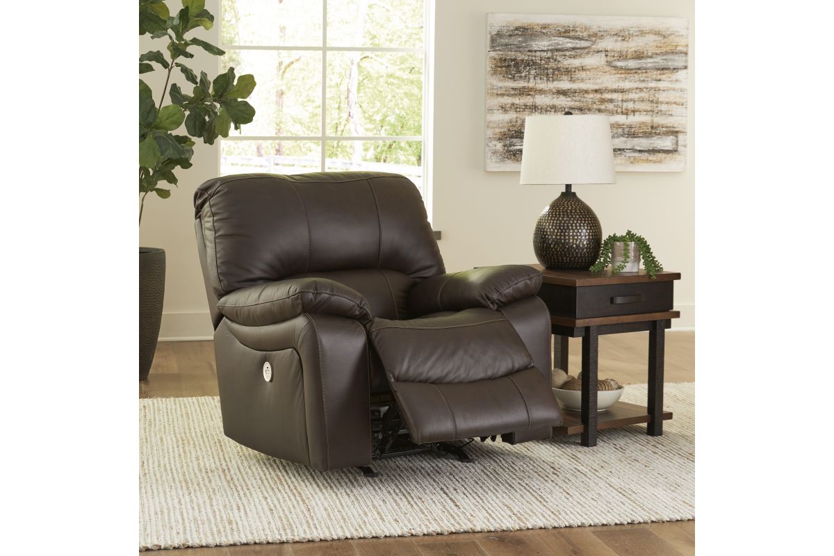 Focus on function. This practical power rocker recliner balances contemporary character and irresistible comfort. Its affordable, expertly matched leather and faux leather upholstery keeps your style up to speed without breaking the bank. Reclining with the touch of a button, this piece plays well in relaxed, luxe seating areas made for quality time. Assembly required.