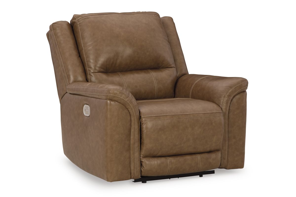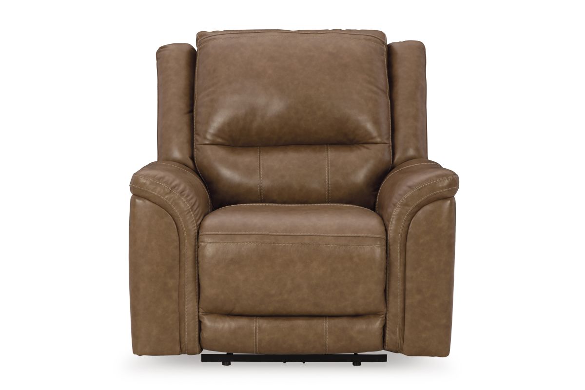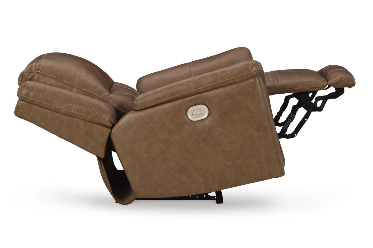 This power recliner delivers comfort and contemporary style in a big (but not bulky) way. Its supple leather and faux leather upholstery, sumptuous cushioning and one-touch control are sure to take you to your happy place. The chair's power adjustable headrest lets you fully recline and still be perfectly positioned to watch TV or read. And thanks to the convenient USB charging port, charging while chilling has never been easier. Assembly required.