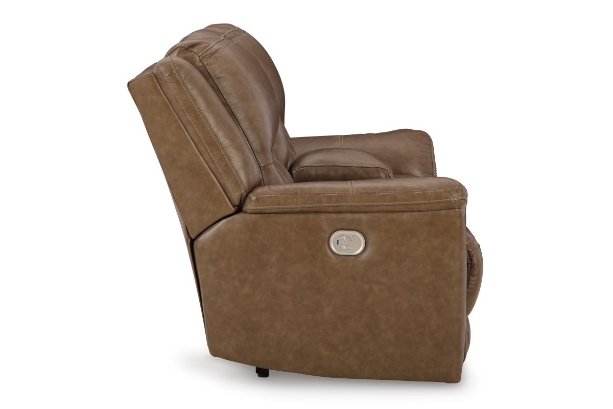 This power reclining loveseat delivers comfort and contemporary style in a big (but not bulky) way. Its supple leather and faux leather upholstery, sumptuous cushioning and one-touch control are sure to take you to your happy place. The loveseat's power adjustable headrests let you fully recline and still be perfectly positioned to watch TV or read. And thanks to the convenient USB port, charging while chilling has never been easier. Assembly required.