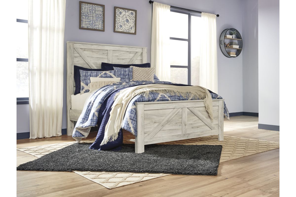 This queen crossbuck panel headboard is made with engineered wood (MDF/particleboard/plywood) and decorative laminate. Pairs with other items in the series to make a bed kit. Assembly required. Headboard Only