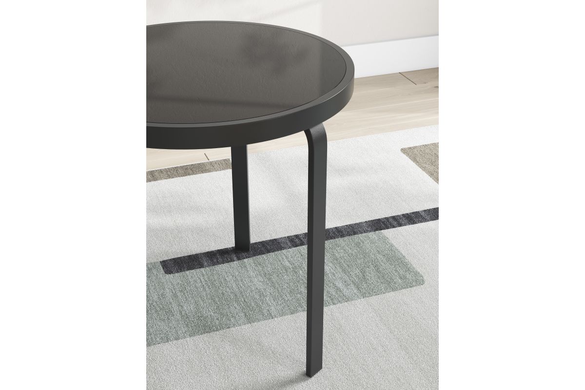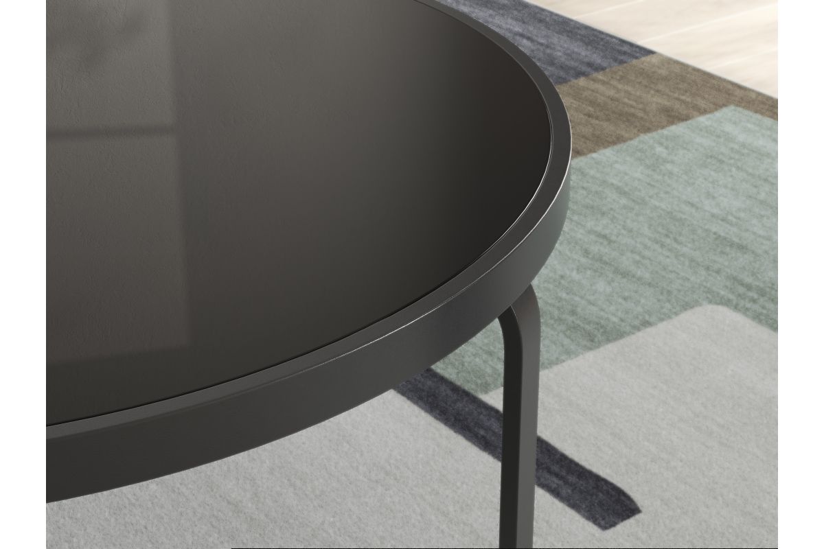 - Round tempered black glass top