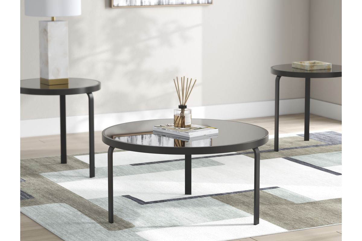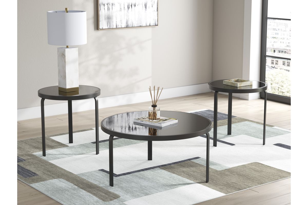 Sleek contemporary style, meet modern versatility. This table set upgrades living room lounging with an added dose of form and function. Clean-lined black metal frames are topped with black glass tops for monochromatic appeal. And with a coffee table and two end tables included, you can add chic convenience sofa-side and to the center of your seating area all at once.