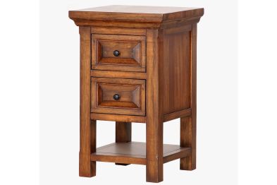 The Hillcrest Small Nightstand is transitional in style with raised panel details on the drawer fronts that add a touch of class. This nightstand is made with sustainable wood products and is double sealed to insure correct and consistent moisture to extend the life of this piece. It is also built with Mortise & Tenon construction and corner blocked through out. The nightstand includes two drawers and a bottom shelf for extra storage. Drawers feature English Dovetail joinery, full extension heavy drawer guides, and the interiors have three coats of clear finish, hand sanded in between each coat for smoothness. This case piece also has dustproofing and adjustable foot levelers.