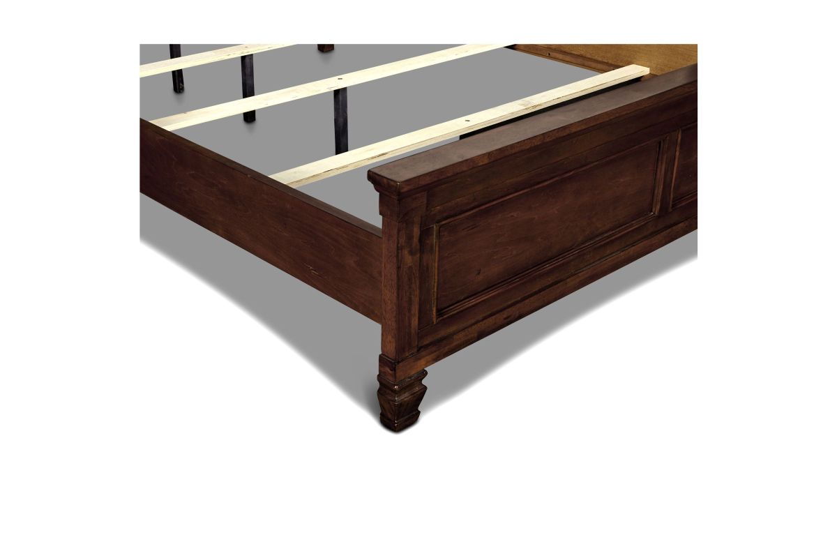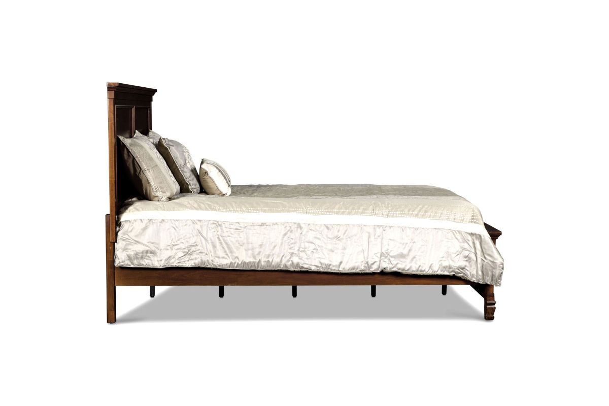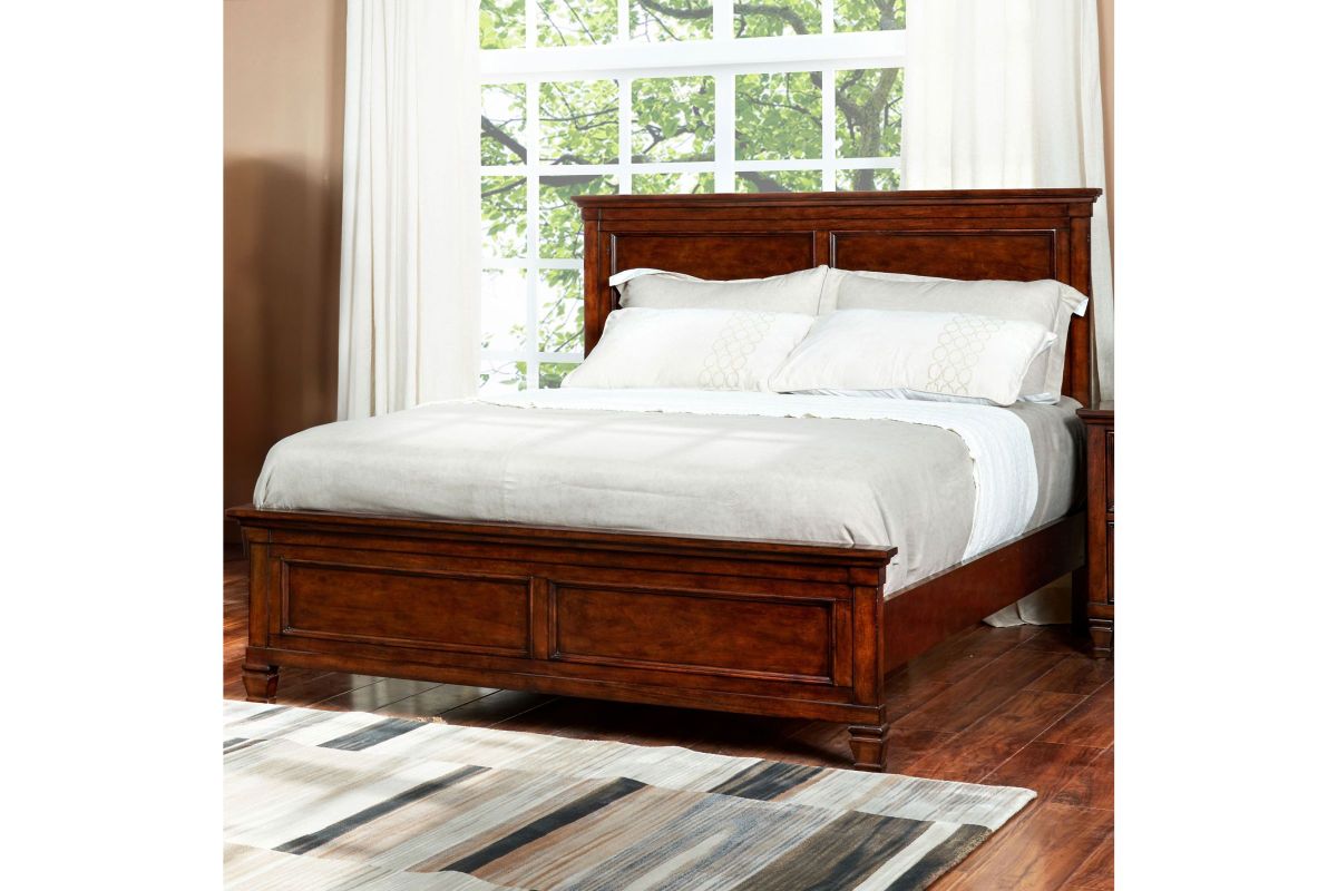 The Tamarack Wood Panel Bed in brown cherry is a true standout, showcasing durable construction with a blend of solid poplar, basswood veneers, and eco-friendly manufactured wood for unmatched strength and longevity. This bed's versatile transitional style masterfully combines contemporary clean lines with classic paneled detailing, effortlessly merging modern and traditional aesthetics. The rich brown cherry finish provides a warm and inviting glow, enhancing the natural beauty of the wood and adding a touch of sophistication to any bedroom. This bed is not just a piece of furniture but a stylish statement in your bedroom. Assembly required. Includes: (1) Panel Headboard, (1) Footboard, (1) Slat Kit, (2) Side Rails