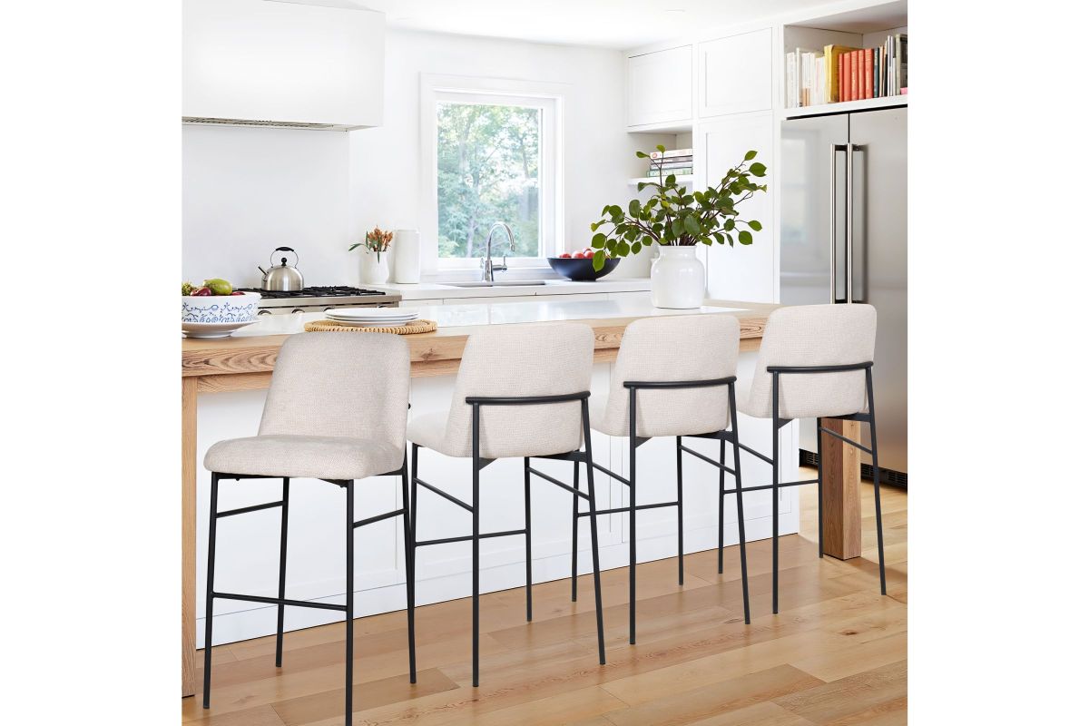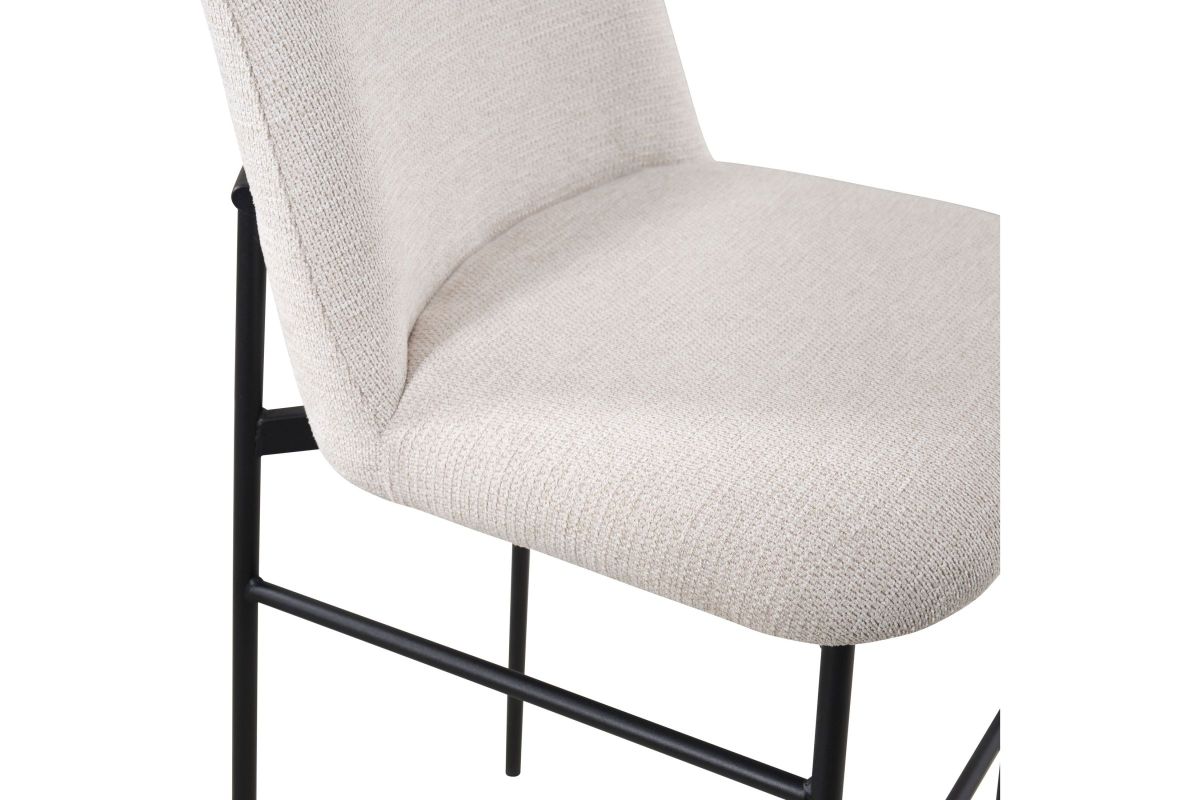 The Erik Bar Chair sets combine modern comfort and sleek design, perfect for contemporary spaces. Each set includes four bar chairs with fully upholstered, elegantly curved seats and backs, offering both a stylish aesthetic and superior comfort. The natural beige woven fabric, made from 100% polyester, delivers a soft and cozy feel while being incredibly easy to maintain, ensuring everyday practicality. The sturdy black iron tube legs provide exceptional stability, resisting bending or breaking, while their sleek design creates a striking contrast with the fabric for a refined, modern look. With a balance of comfort, durability, and style, the Erik Bar Chair sets are an excellent choice for any kitchen or bar area. Assembly required.