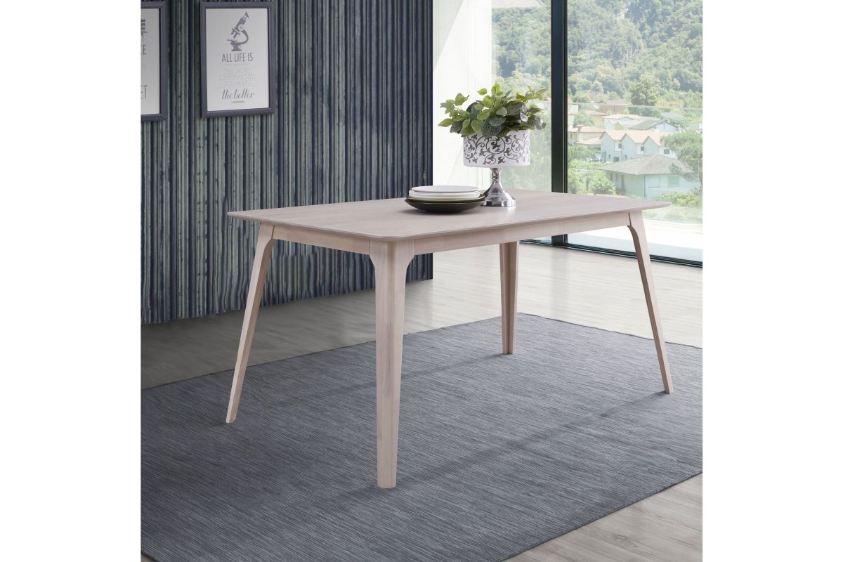 The Oscar Mid-Century Modern Wood Dining Table is a perfect blend of timeless style and practical functionality for your dining space. Crafted from solid Rubberwood and Ash Veneers, this dining table is designed to last, providing a durable and long-lasting centerpiece for your meals. The table features a clean, subtle white wash finish that enhances the natural beauty and grain patterns of the Ash, adding warmth and sophistication to your decor. The design of the Oscar Dining Collection emphasizes clean lines, organic curves, and a focus on functionality, reflecting the classic mid-century modern style. This aesthetic balance of form and function creates an inviting and practical living space. The table comfortably seats up to six people, making it versatile enough to fit into kitchen nooks, small dining areas, or your main dining room. With its elegant design and robust construction, the Oscar Dining Table is a standout piece that seamlessly integrates into any contemporary living space, offering both style and utility. Assembly required.