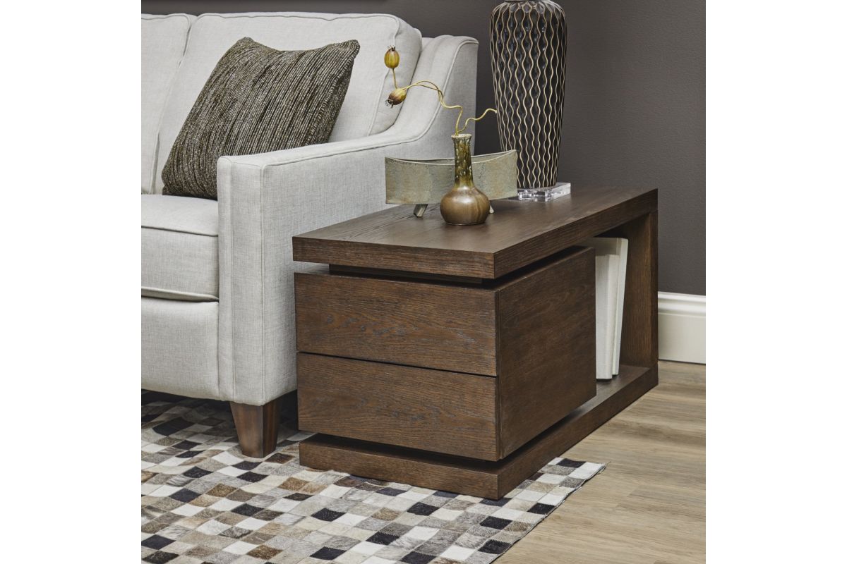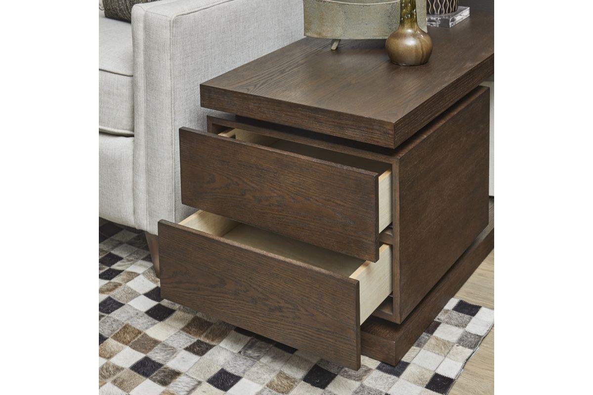 The Athens end table makes a bold, grand statement that fills your space with a regal gravitas. A stately, noble silhouette, Athens fits perfectly into a transitional style. Beautifully fashioned from high-quality, ethically harvested rubberwood, this gorgeous piece comes in a decadent chocolate brown finish, guaranteed to bring everlasting quality. With two smooth-gliding, press-open drawers and a bonus discreet back compartment, this end table has all the storage you’ll need. For the best in sleek, glamorous functionality, Athens is the clear winner.