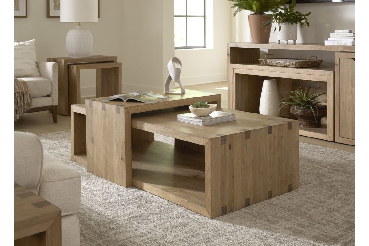 Inspired by the best modern looks, the Lyndon coffee table is stunning yet elegant fit in any home. Accented by a cashmere finish and beautiful wood accents, the Lyndon collection will make it easy to express your style, your way.