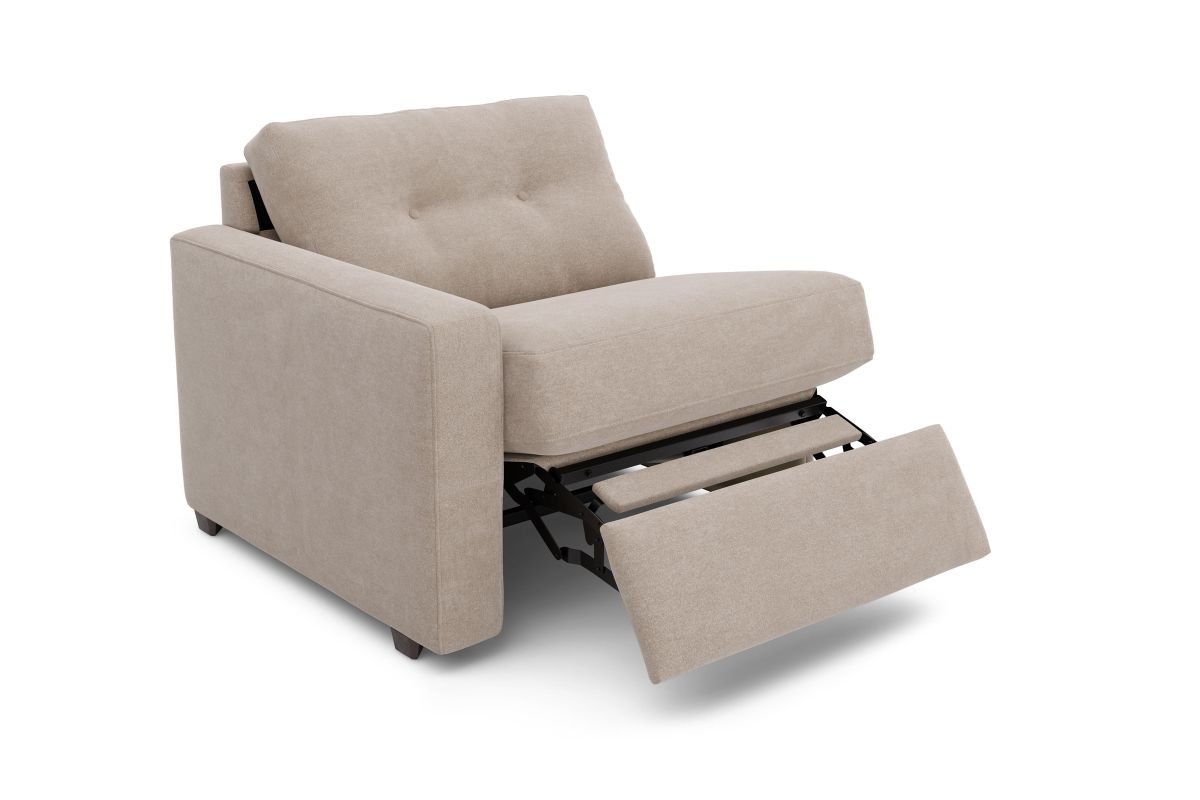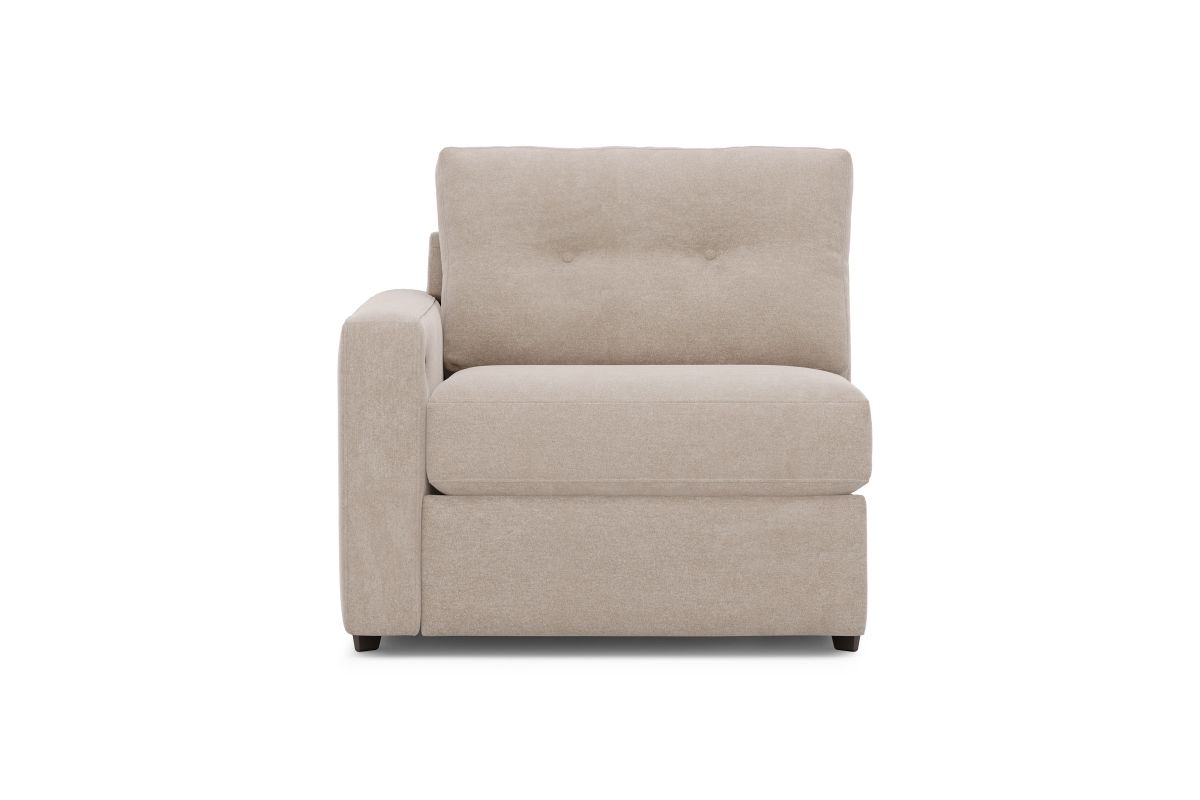 Discover the limitless possibilities of the M1 sectional, thoughtfully designed with comfort and flexibility in mind. This customizable seating solution features individual pieces that can be reconfigured to the shape you need. Game days, movie nights, sleepovers, and everyday relaxation are all better when the seating arrangement you want is always right at your fingertips. Each individual piece is upholstered on all sides in soft, chenille performance fabric that includes Repreve yarn, made with recycled plastic bottles. The open seating includes a chaise and has welted track arms, top-stitched seat cushions and button-tufted back cushions for an elegant silhouette. Media consoles provide hidden storage, USB charging ports, wireless charging, Bluetooth speakers, and double as side tables with sleek acrylic tops.