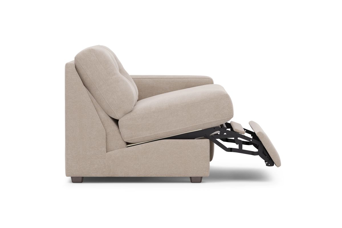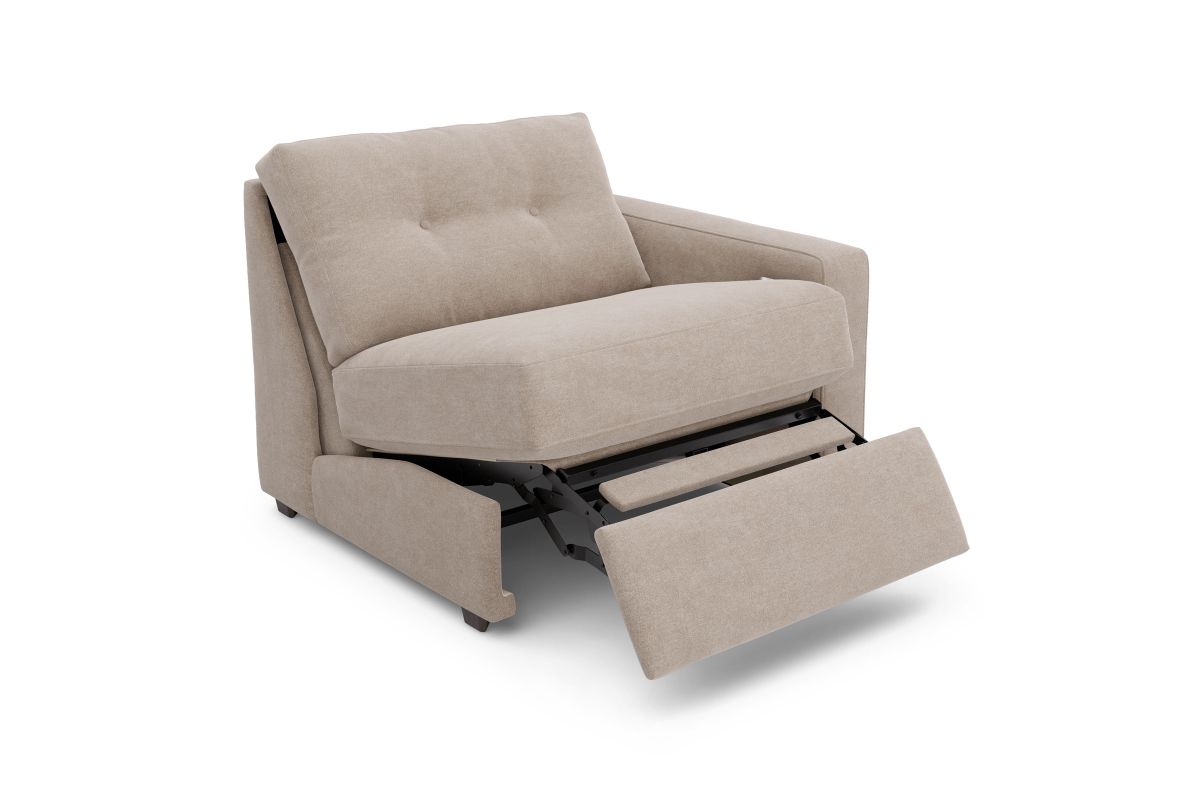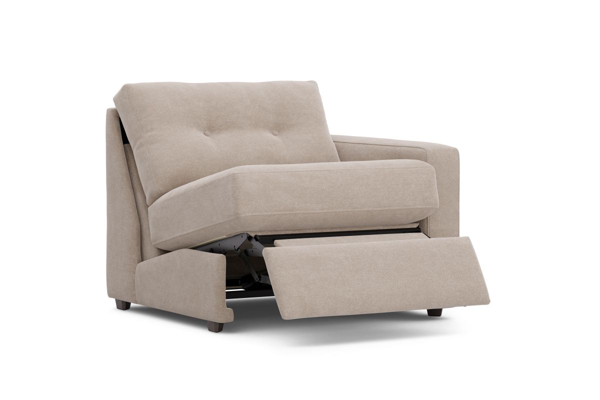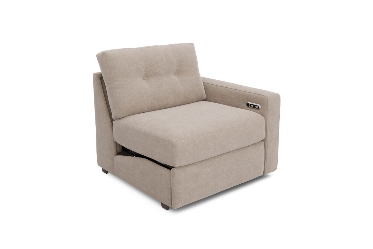 Discover the limitless possibilities of the M1 sectional, thoughtfully designed with comfort and flexibility in mind. This customizable seating solution features individual pieces that can be reconfigured to the shape you need. Game days, movie nights, sleepovers, and everyday relaxation are all better when the seating arrangement you want is always right at your fingertips. Each individual piece is upholstered on all sides in soft, chenille performance fabric that includes Repreve yarn, made with recycled plastic bottles. The open seating includes a chaise and has welted track arms, top-stitched seat cushions and button-tufted back cushions for an elegant silhouette. Media consoles provide hidden storage, USB charging ports, wireless charging, Bluetooth speakers, and double as side tables with sleek acrylic tops.