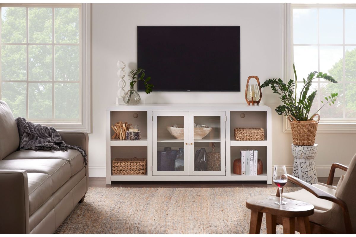 The Taylor 71" Console is cleverly scaled to fit any size room and includes signature features. The elegant finishes are both soft and organic. The champagne finished hardware provides a stunning contrast to each unique finish for a contemporary and minimal look.