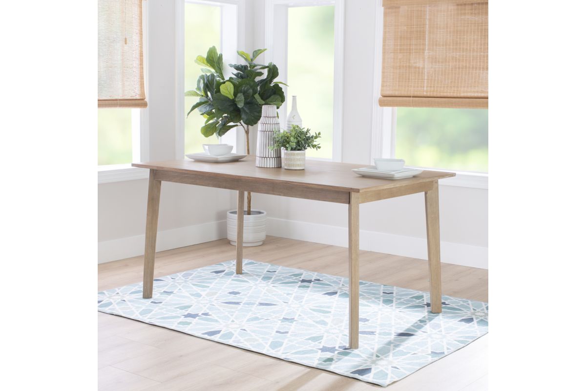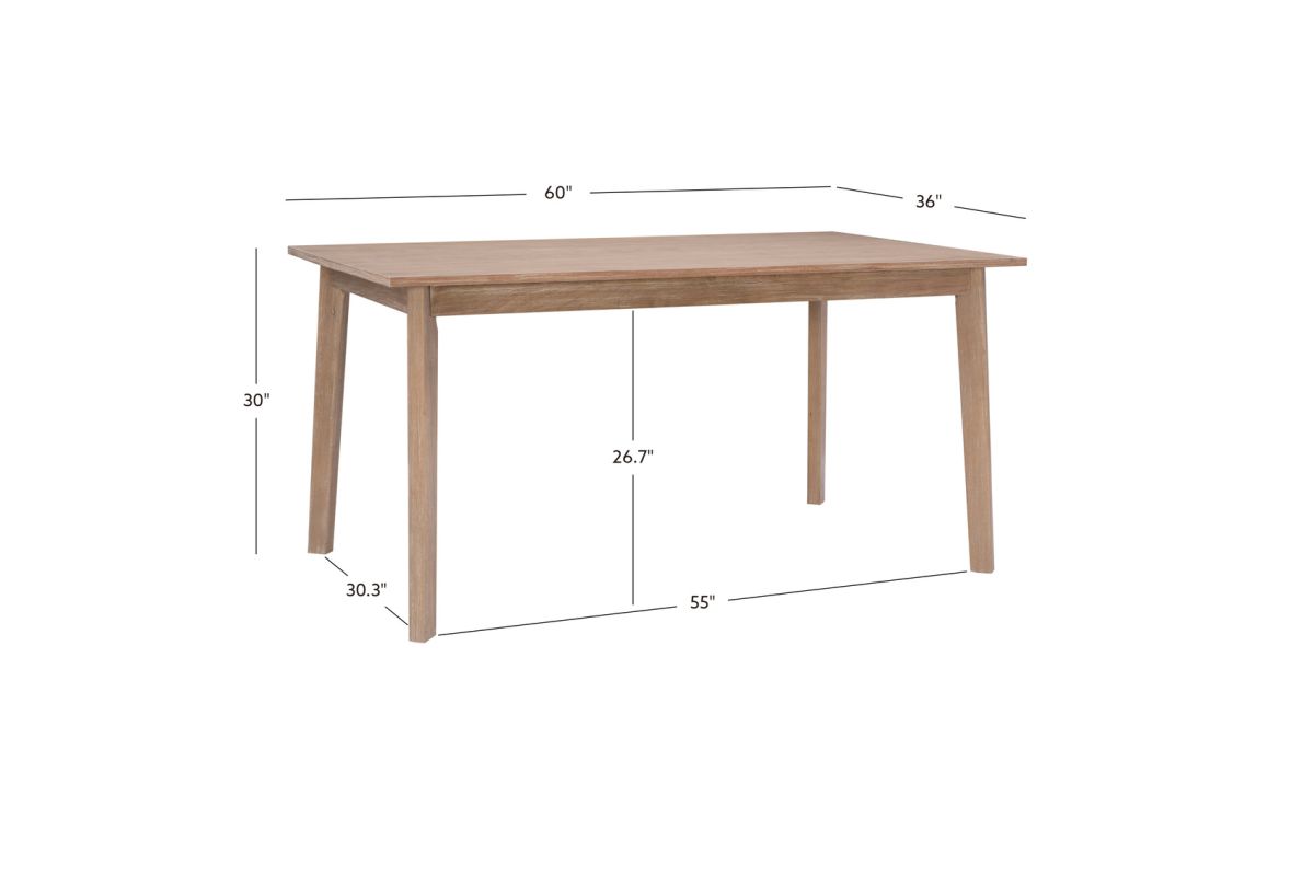 Gather around for family meals and friendly get-togethers with this timeless dining table as your centerpiece. The sleek silhouette and clean lines embody the grace of midcentury design, while the glowing natural stain highlights the rustic beauty of a unique woodgrain. Crafted from solid rubberwood and MDF, this sturdy table measures at 60"L x 36"W x 30" H and seats up to 6 comfortably. For those who love a coordinated look, it is also available in a complete dining set with a matching bench and chairs. Assembly required.