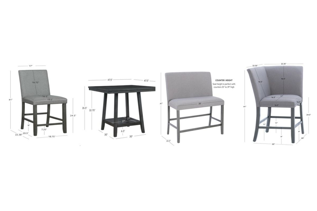 Sorry, the Seneca Grey Counter Group Bench Nook 6-Piece is no longer available. We've left this page up for reference only. Check out the great alternatives on this page or call 248-481-2208 or Chat with a Gardner White Sales Specialist about similar products.