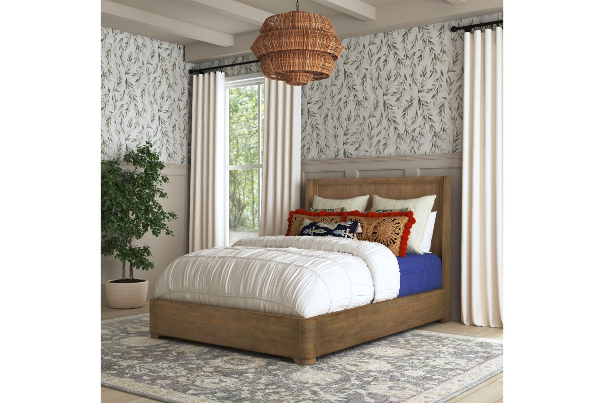 Simple geometry creates a look of timeless elegance for your bedroom with the Normandy Queen Panel Bed. Inspired by European architecture, this panel bed offers a minimalist silhouette featuring an inviting, warm driftwood finish. Standing on a dignified, strong frame, this piece is sure to be a conversation starter. Regal comfort in a simplistic design sure to bring enduring style for generations. Bring it all home with Normandy. Assembly is required upon delivery.