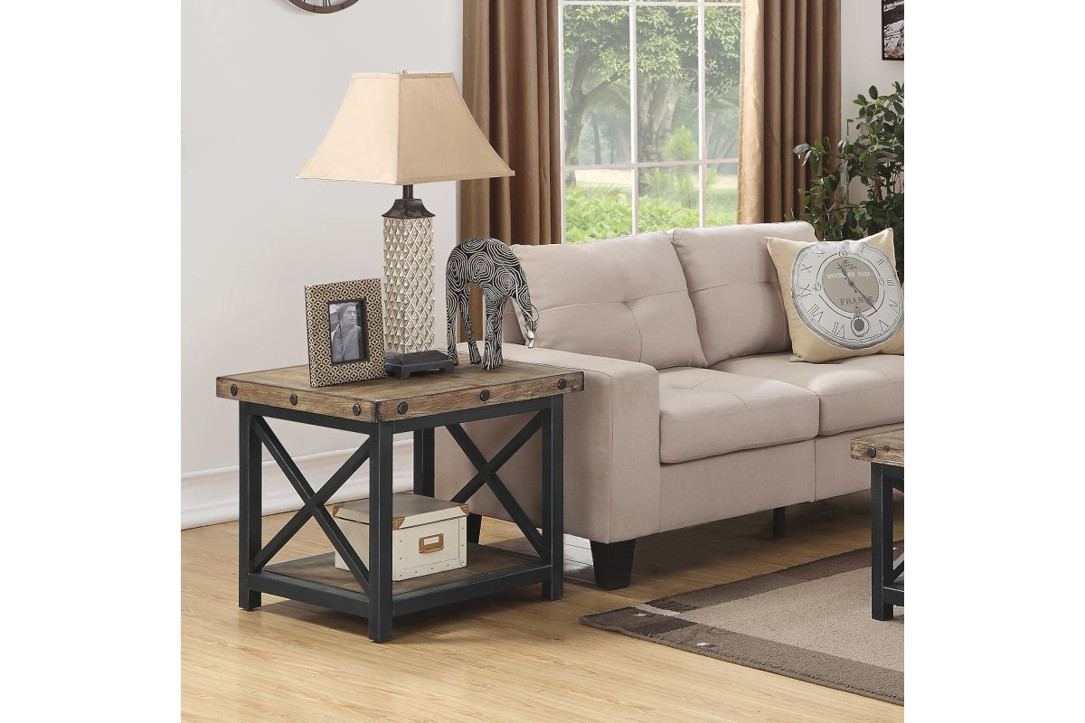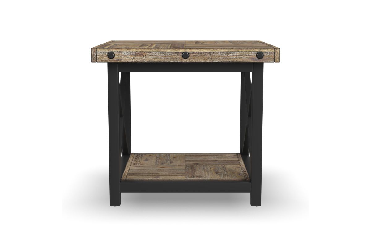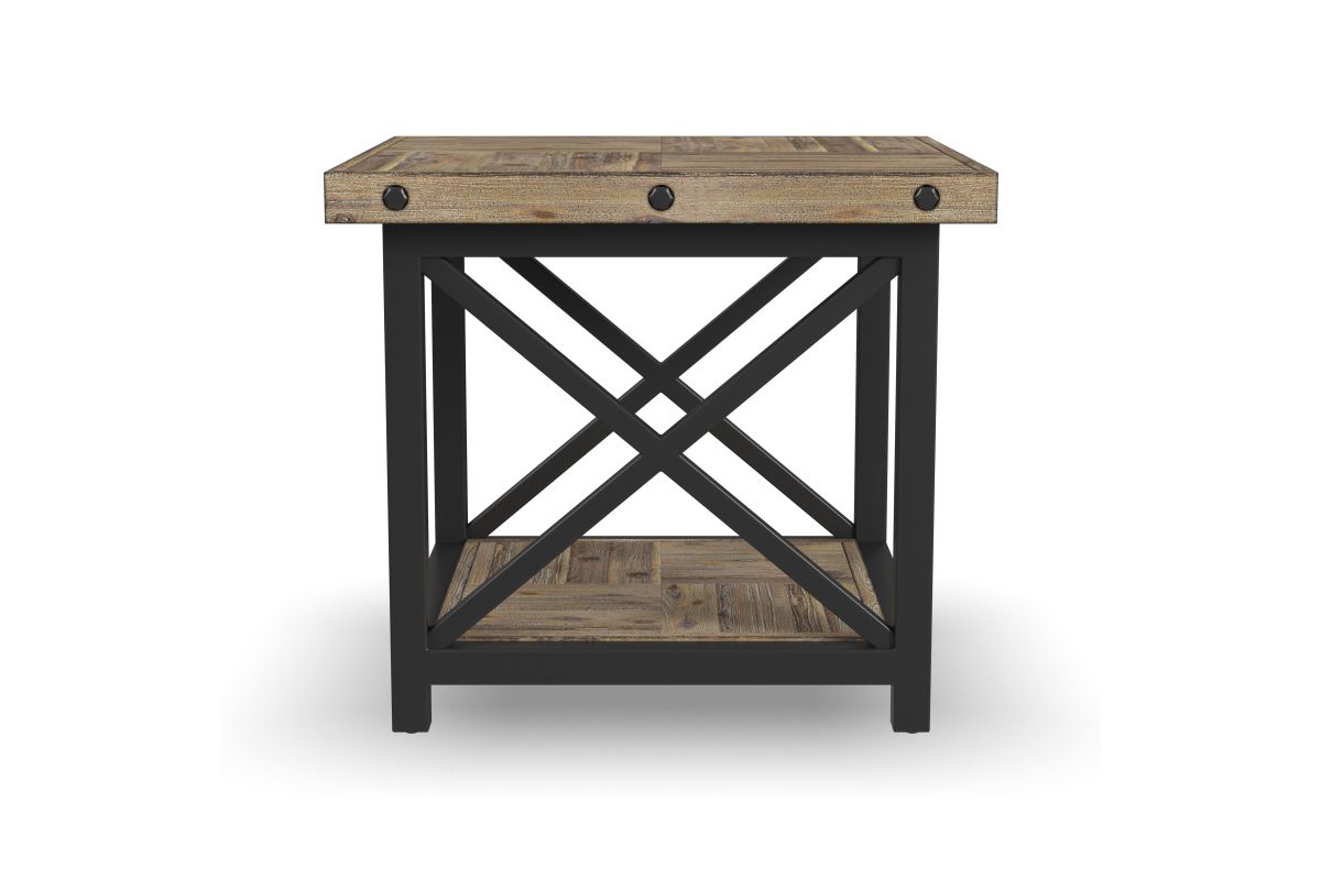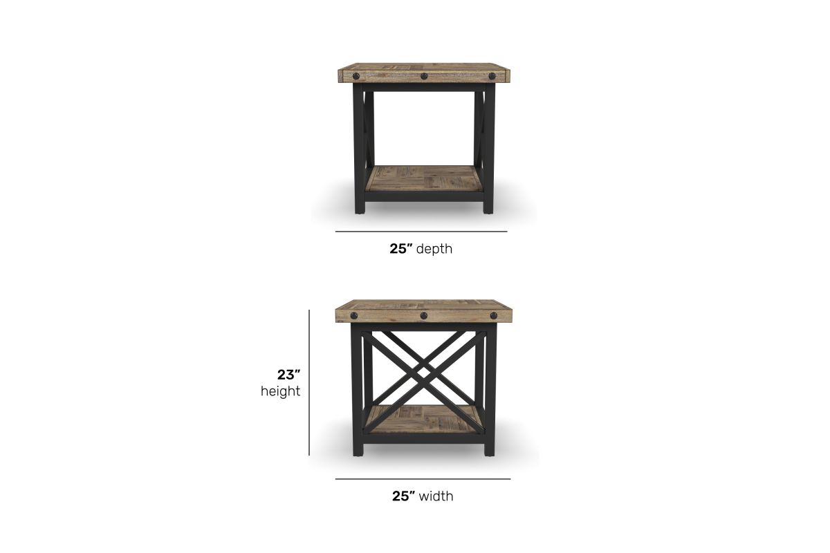 Cozy up to a good book with lighting placed right where you need it using the Carpenter lamp table. The perfect companion to an armchair or sofa, this rustic meets industrial table includes an open fixed shelf below provides an additional area to stack books or display décor. Inspired by the look of vintage workbenches, this lamp table features distressed acacia wood planks for a reclaimed look, hand-worked metal frames and exposed bolt heads. Assembly required.