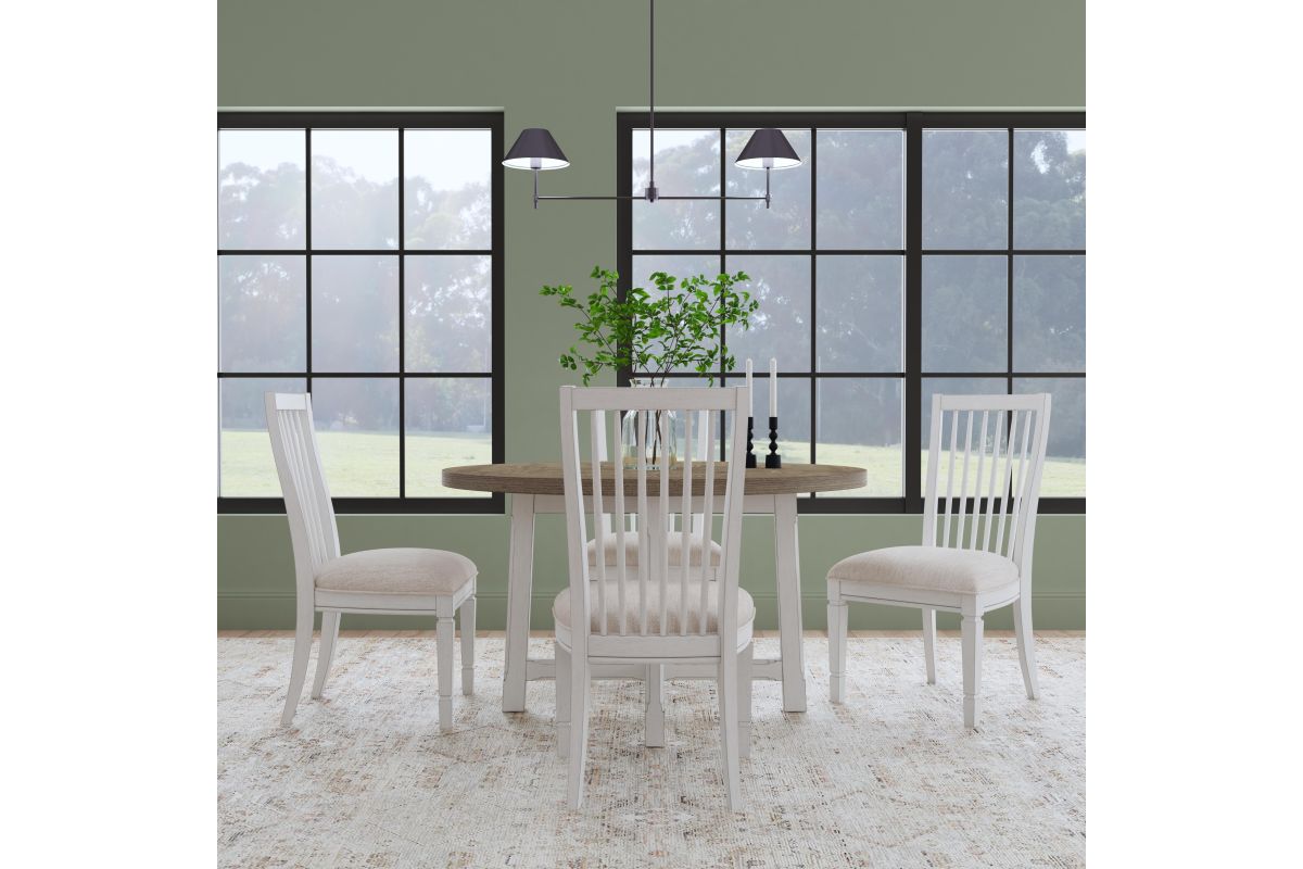 Create a cozy ambiance full of casual charm in your home with the Melody round end table. Bringing a timeless warmth with cottage-inspired design elements and a beautifully soft, weathered look, this table features an open design and adjustable shelf for storage and display versatility. Enchanting details include a distressed white base with an inlaid gray parquet top. Pair it with other Melody furnishings for a perfectly coordinated look. Exceptionally built with solid wood construction, the Melody round end table is well-crafted to offer years of lasting enjoyment. Assembly required.