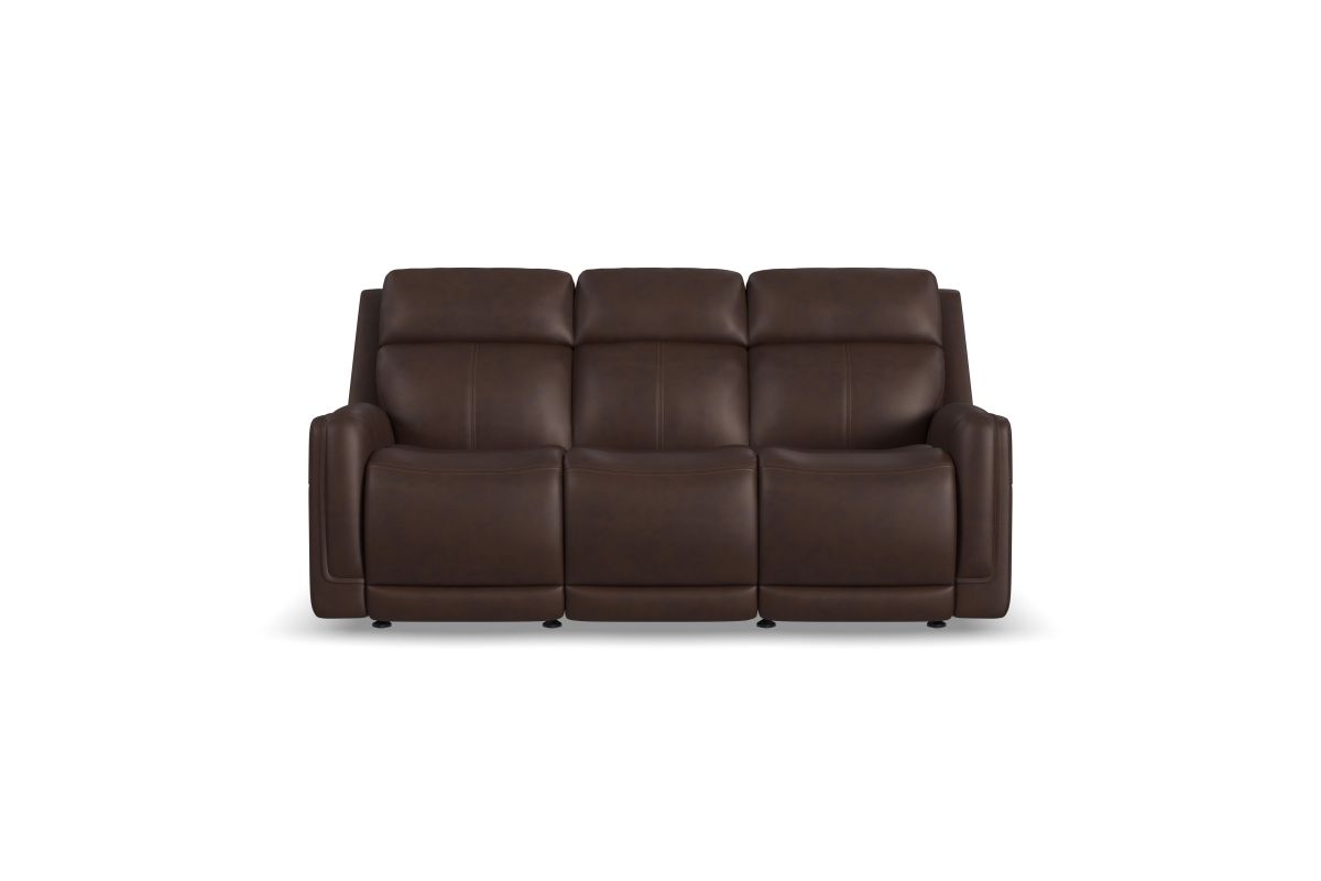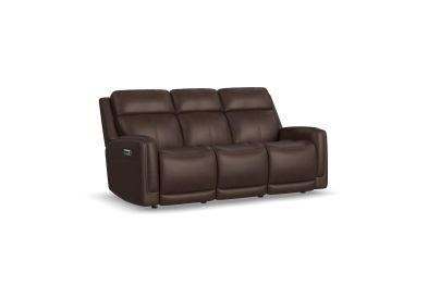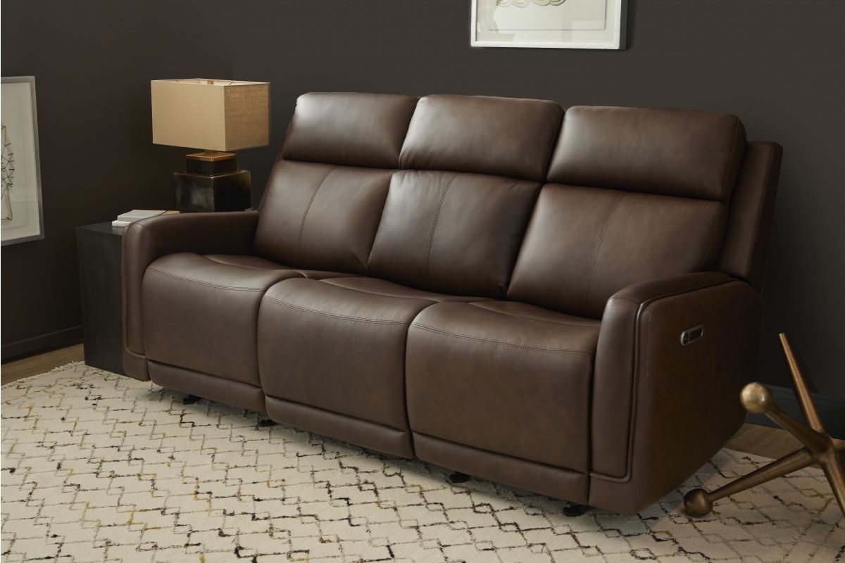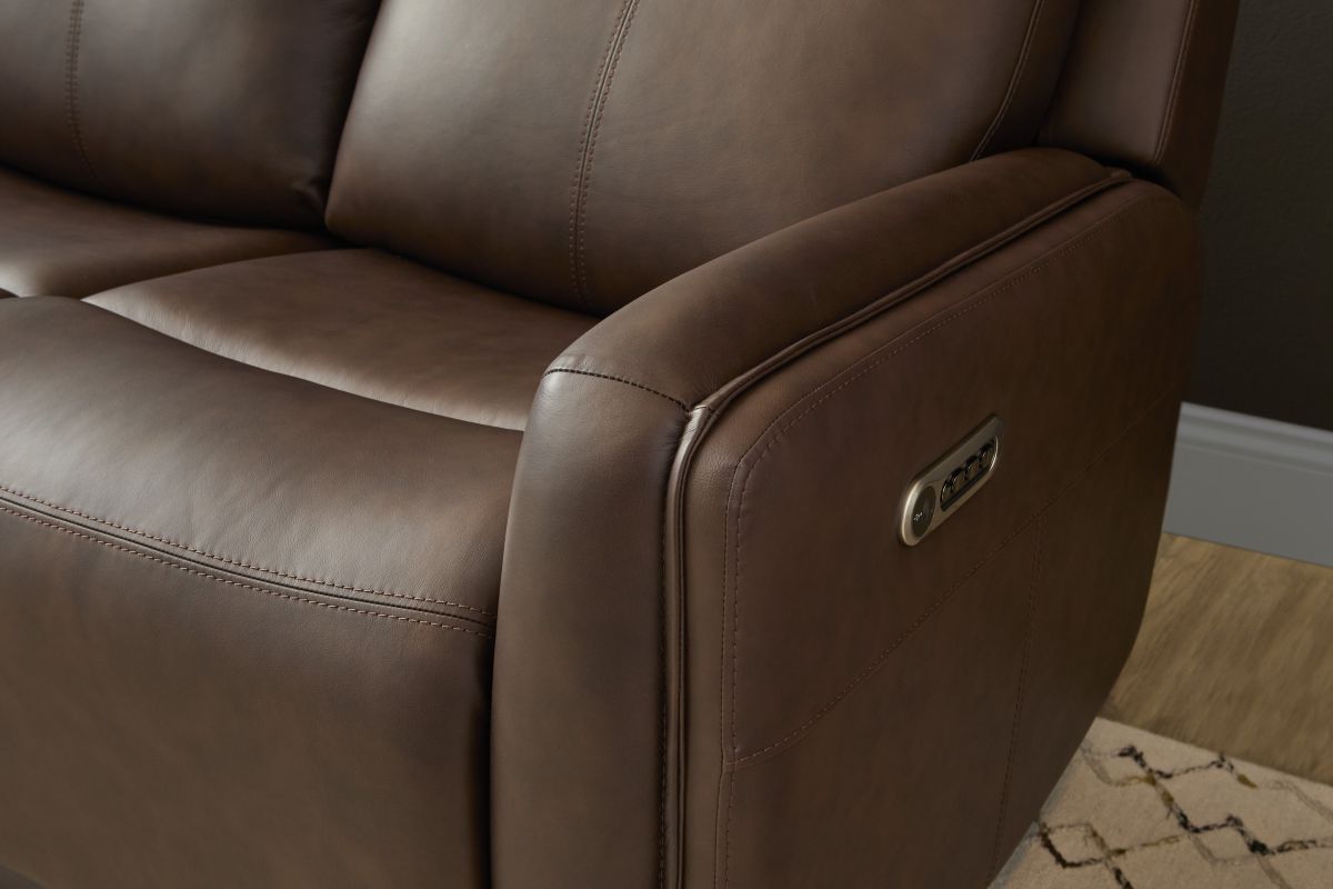 Bring your living room to the next level with the sleek, innovative Alister power gliding sofa. This transitional style sports sleek curves upholstered in your choice of luxurious top-grain leather. A step above typical reclining, these gliding seats provide a smooth, versatile, and unique experience. The ultimate in futuristic comfort, this sofa includes a drop down back cushion with two cupholders, a wireless charging pad, and USB ports to keep your devices charged and within reach. Kick back in the Alister, the future of relaxation. Assembly required.