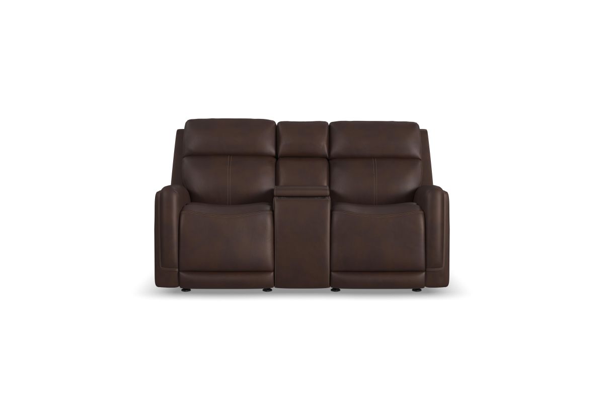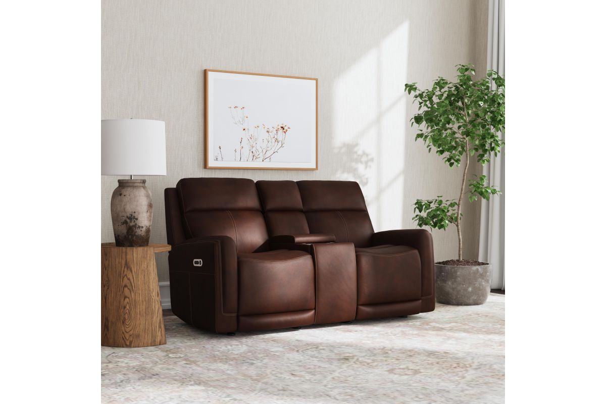 Alister Burnt Umber Power Gliding Loveseat with Console, Power Headrests & Lumbar