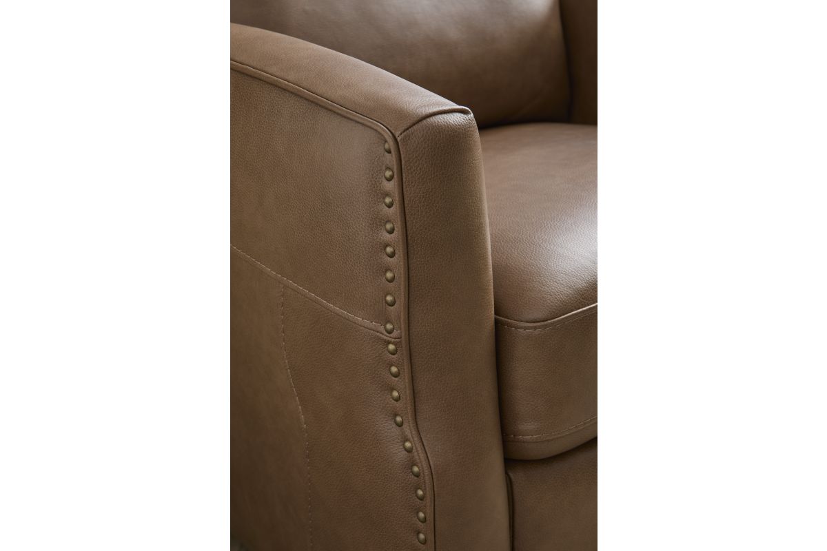 - Upholstered in a luxurious, cedar brown top-grain leather that is durable for everyday use