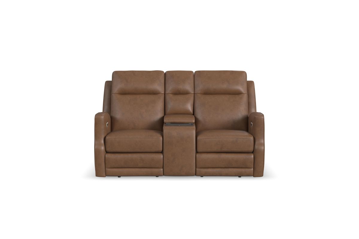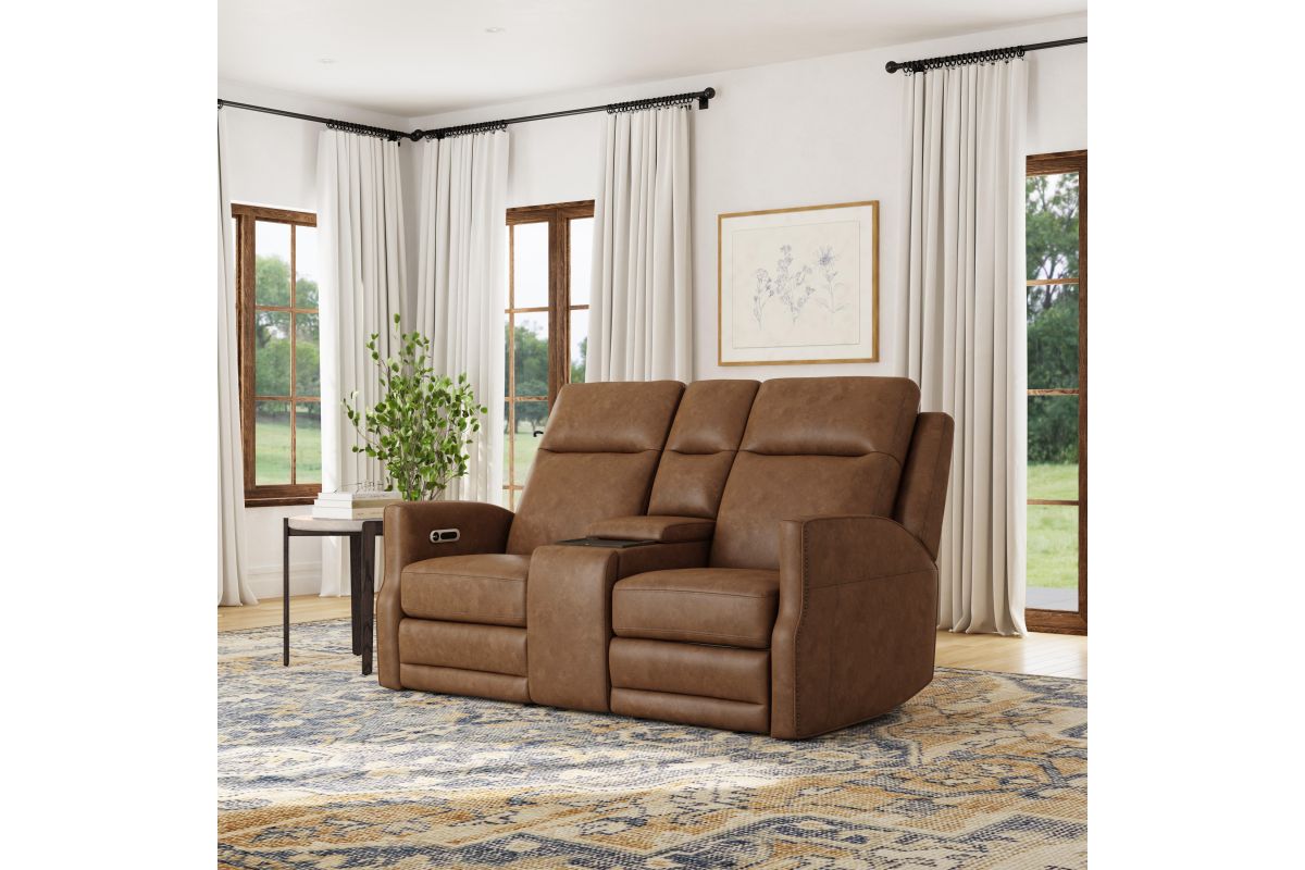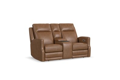 The Maxwell reclining loveseat has all the grand, noble gravitas to make a statement, complete with the cutting-edge comfort you need to relax. This traditional design brings a vintage flair along with triple-power recline for modern relaxation. The Maxwell loveseat includes a center console with storage, cupholders, and a wireless charging tray to charge all your devices. Upholstered in rich leather options and complete with a gleaming nailhead trim, Maxwell brings all the vintage style you want together with the innovative comfort you need. Assembly required.