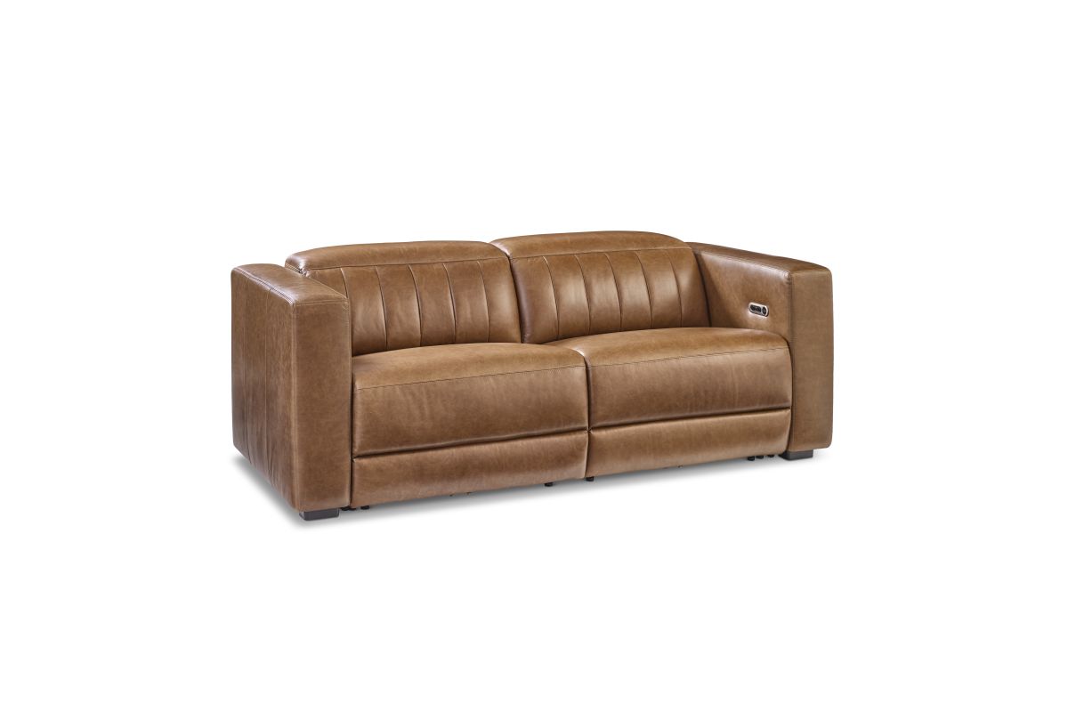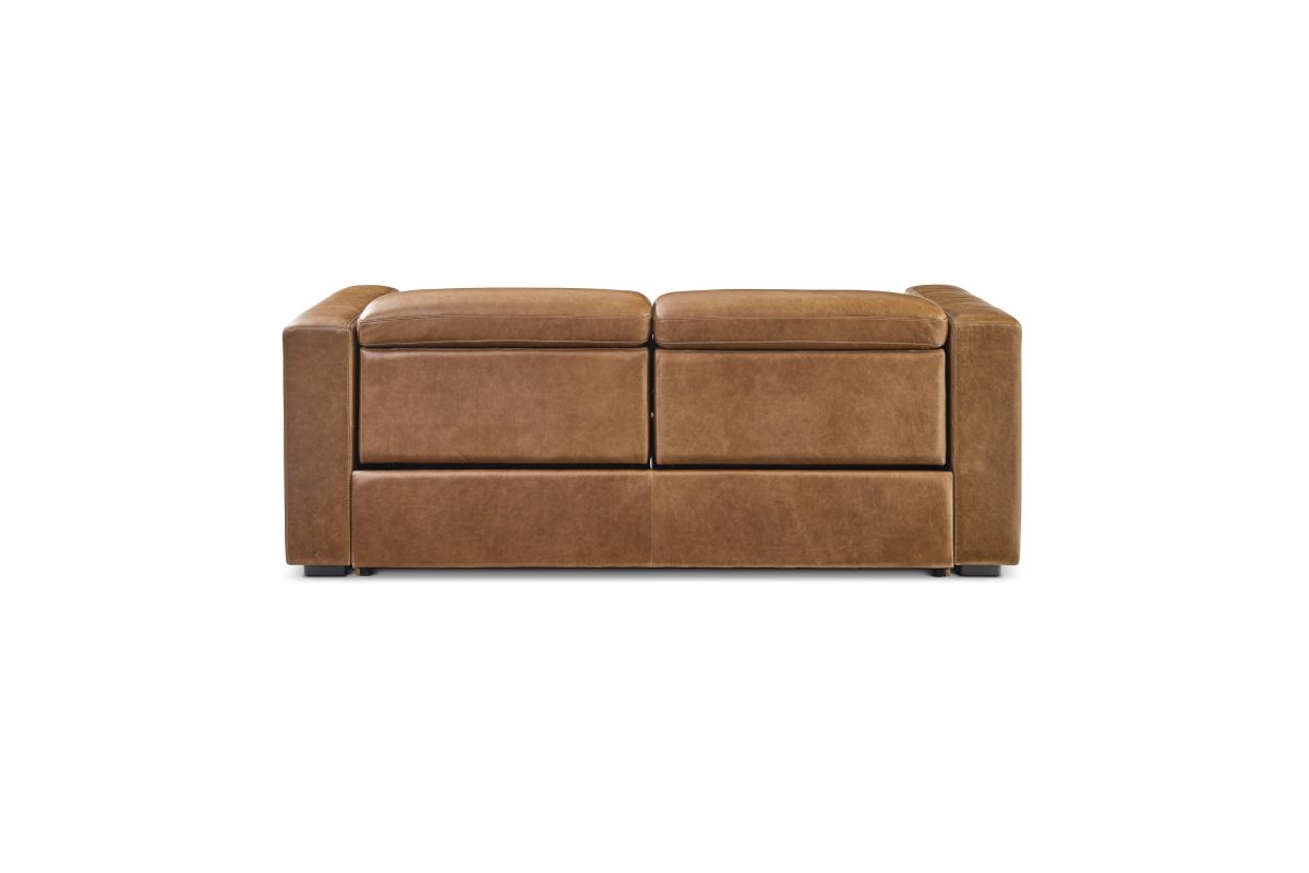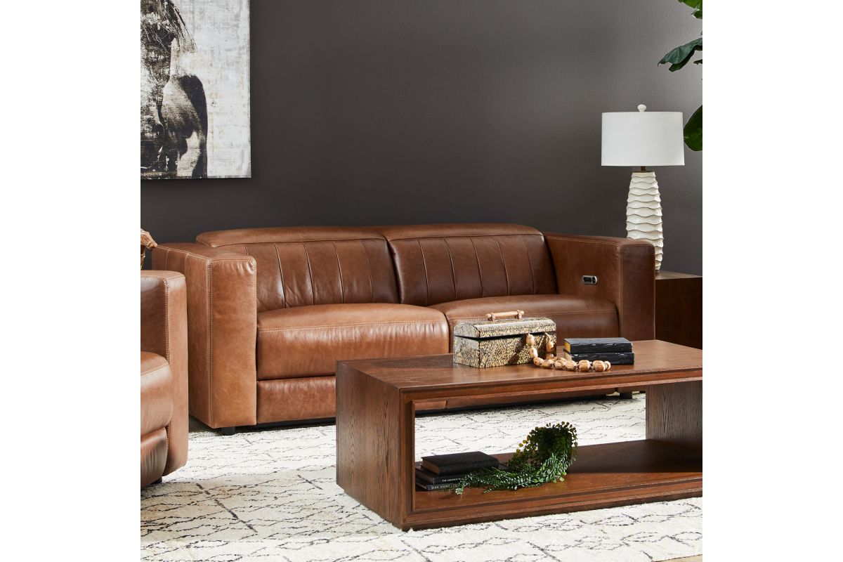 Casually elegant and substantial in form, the Austin power reclining sofa with power headrests defies first-impression expectations with customizable comfort and Zero Gravity technology. Wide track arms and spacious seat cushions beckon relaxation, while alluring in-back channeling and a bold geometric profile add contemporary flair. Upholstered in sumptuous leather that develops a unique patina as it ages, the Austin sofa is designed to be cherished by those who appreciate the authentic character of materials.