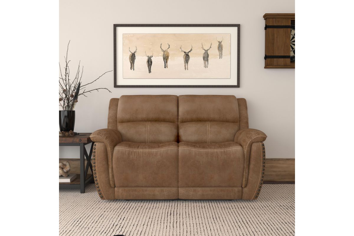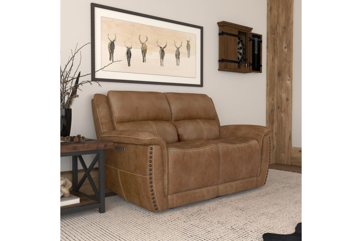 Beautiful, traditional style is enhanced with modern features and ergonomics with the Beau fabric power reclining loveseat with power headrests. Striking nailhead trim and flange-edge stitching detail make a timeless design statement that looks equally at home in a modern farmhouse living room or rustic man cave. Soft, pad-over arms, contoured seats and extended footrests offer exceptional comfort for two, while Zero Gravity technology provides a feeling of weightlessness. Useful features such as charging ports and power headrests offer added convenience that will make Beau your favorite spot in the house.