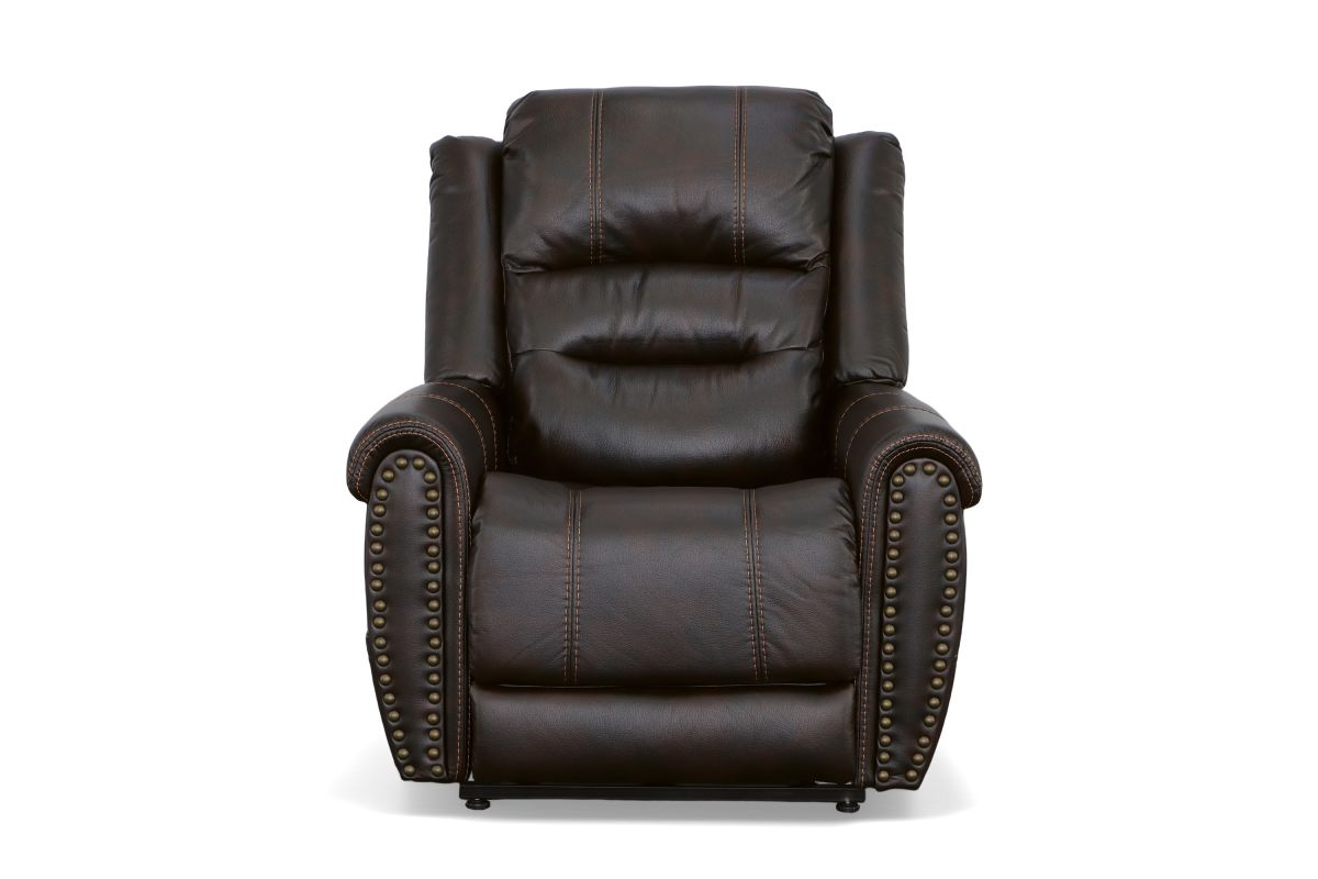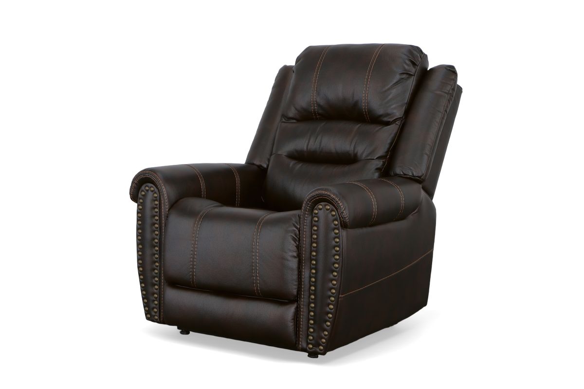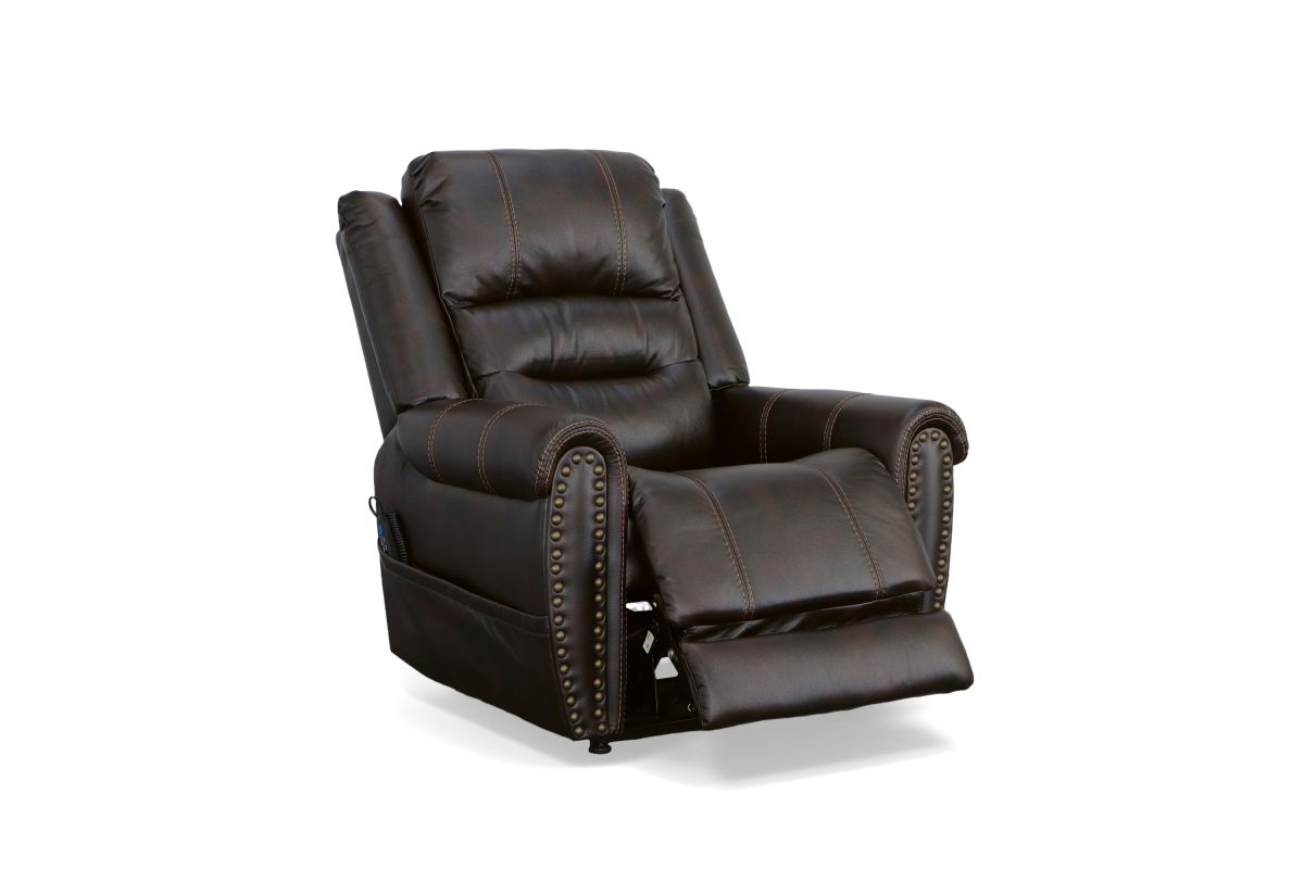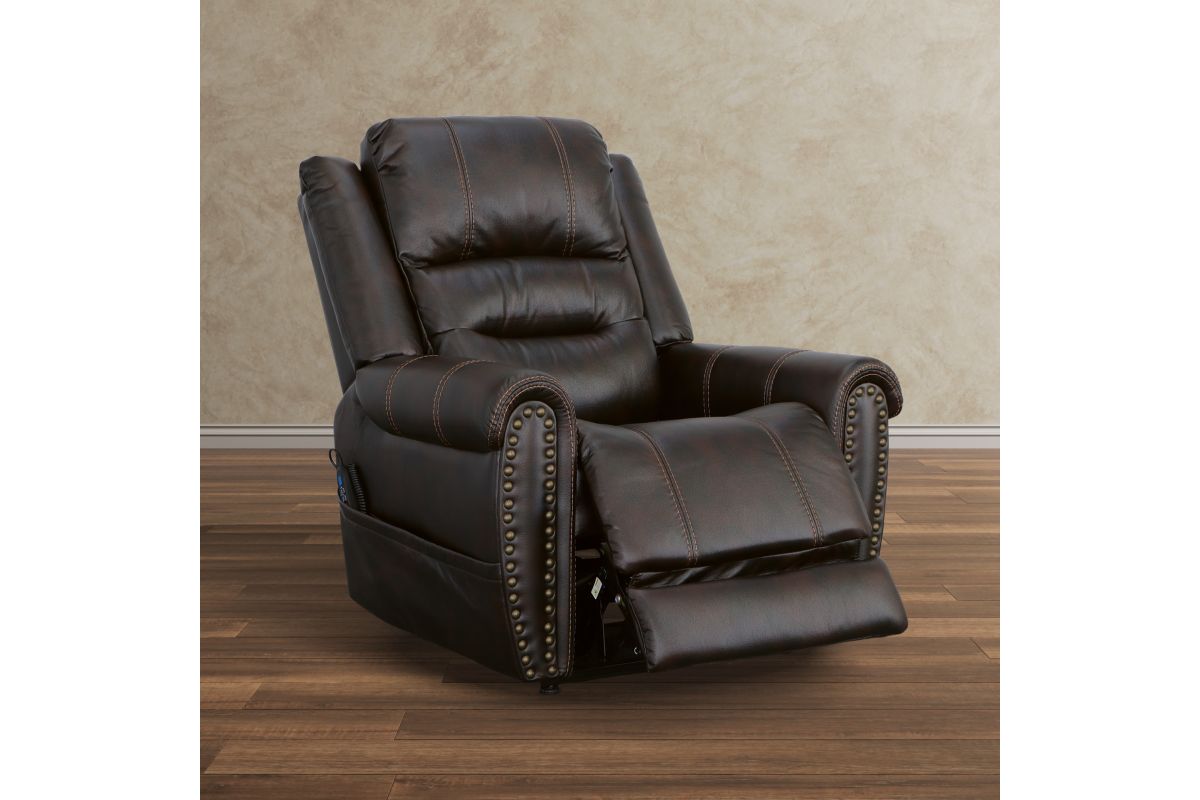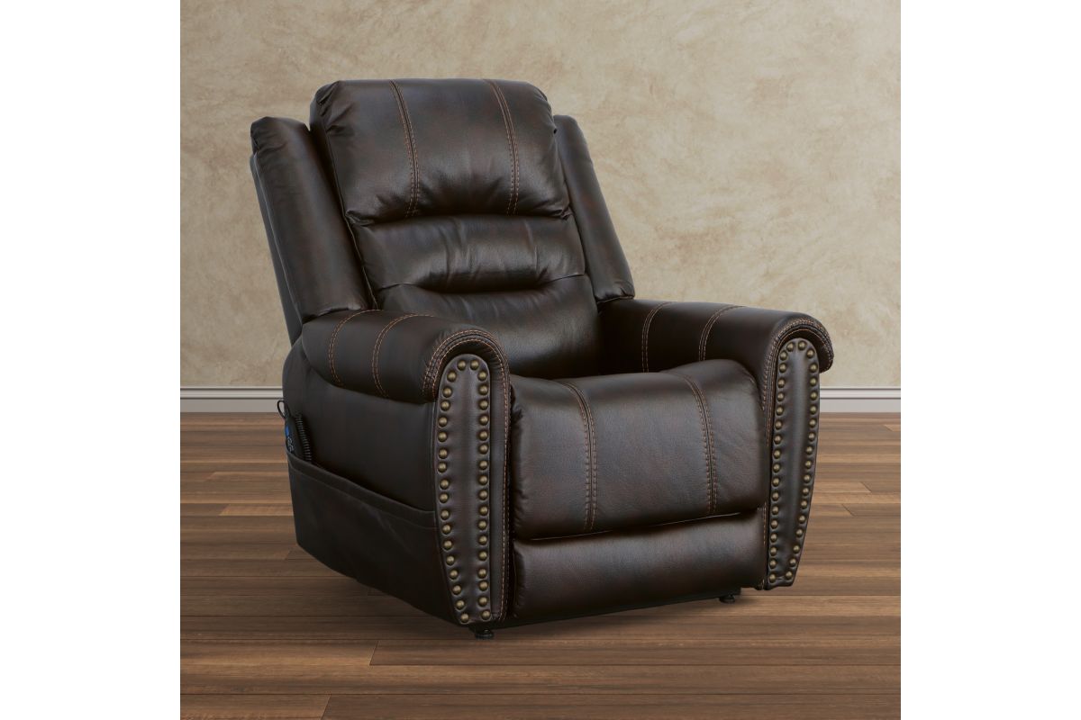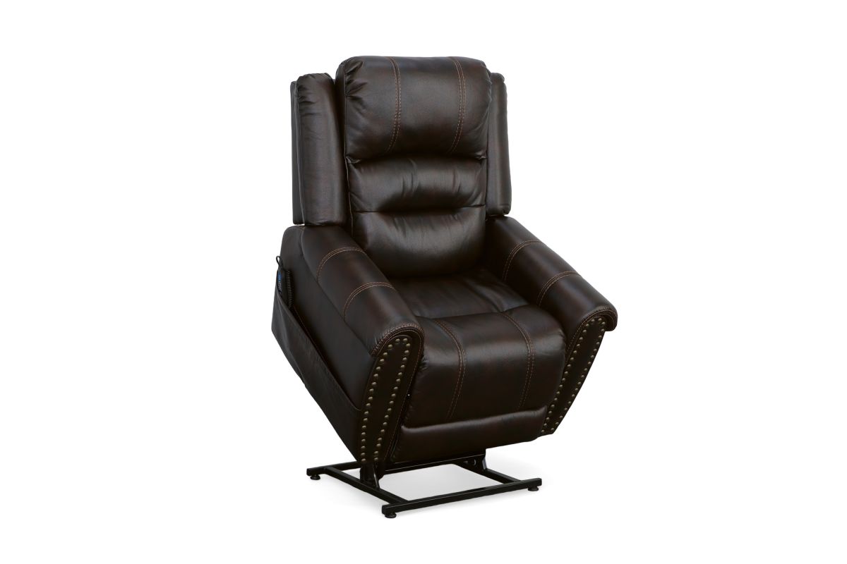 The generous padding and heavy-thread stitching detail of the Oscar power lift recliner with power headrest instantly grabs your attention and welcomes you to take a seat. Nailhead trim traces the edges of the arm fronts to highlight the welcoming silhouette, while an extended footrest provides additional leg rest space for taller users. Customize your sit with power recline and headrest that can be adjusted at the touch of a button. Power lift provides easy and safe assistance when getting in and out of the chair. Outfitted in a dark, molasses brown fabric, this recliner brings a leather look to your room with the softness and comfort of fabric.