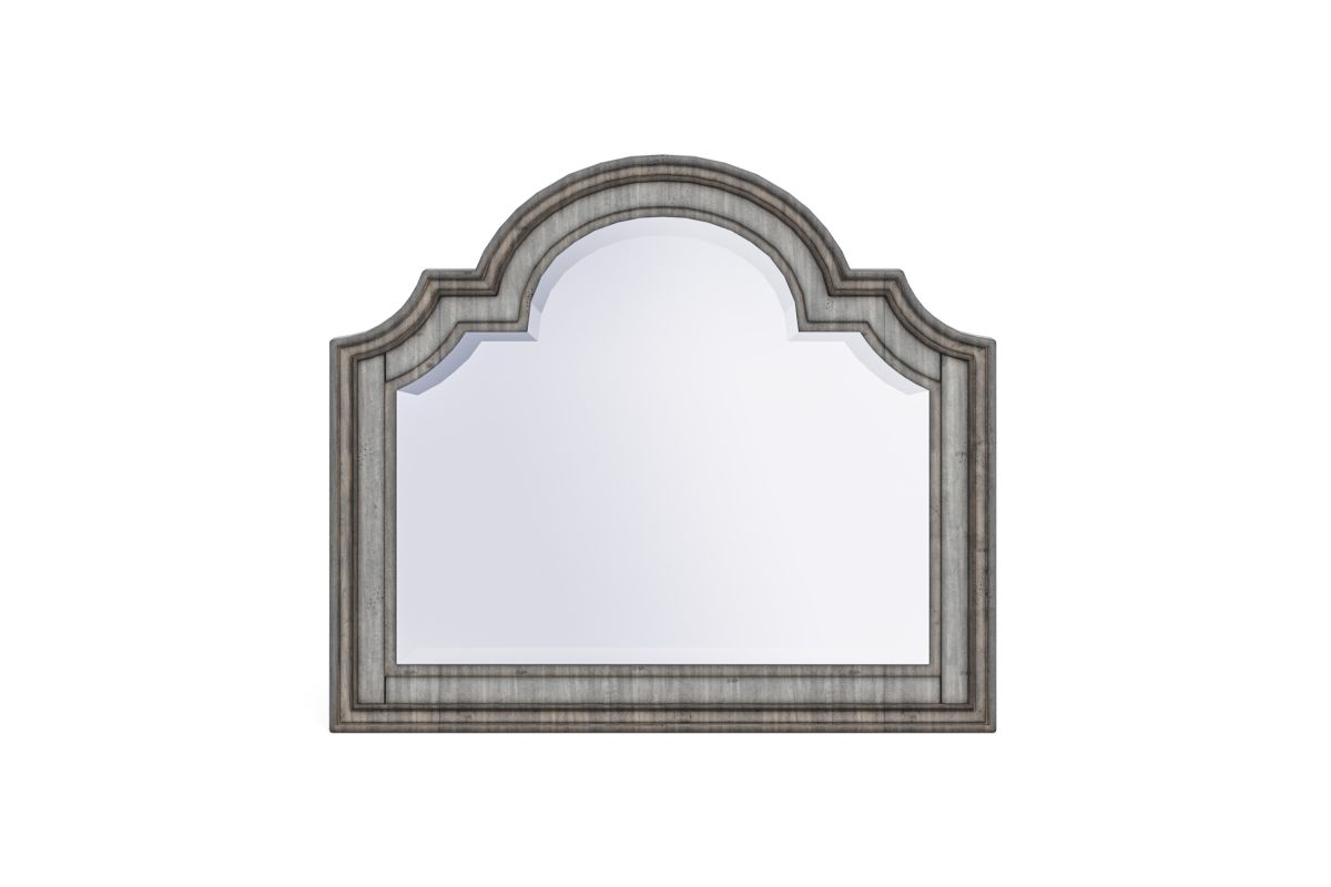 The perfect companion to the Plymouth dresser, this charming mirror adds relaxed, cottage-inspired style to any bedroom. Beveled glass, a scalloped profile, intricate molding and a weathered graywash finish add to the vintage appeal.