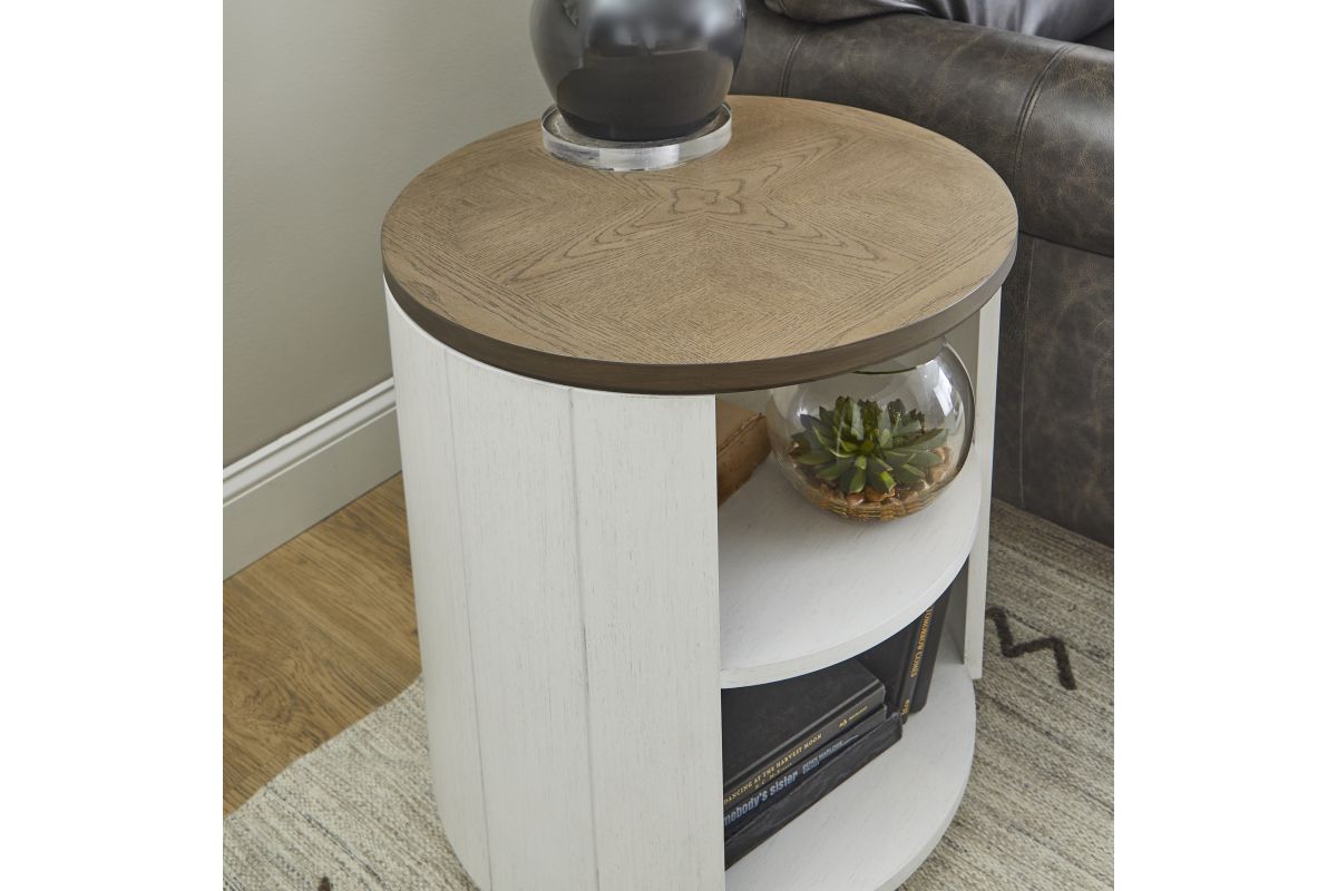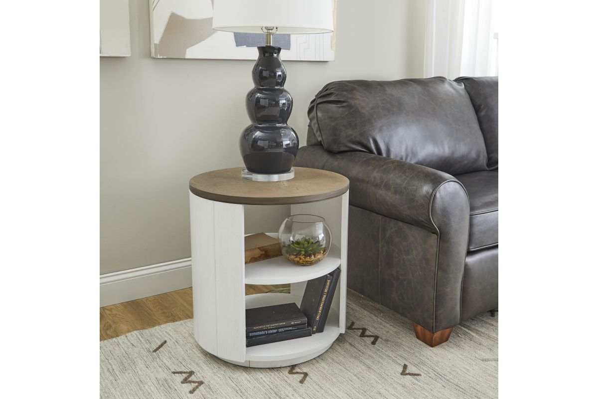 Create a cozy ambiance full of casual charm in your home with the Melody round end table. Bringing a timeless warmth with cottage-inspired design elements and a beautifully soft, weathered look, this table features an open design and adjustable shelf for storage and display versatility. Enchanting details include a distressed white base with an inlaid gray parquet top. Pair it with other Melody furnishings for a perfectly coordinated look. Exceptionally built with solid wood construction, the Melody round end table is well-crafted to offer years of lasting enjoyment.