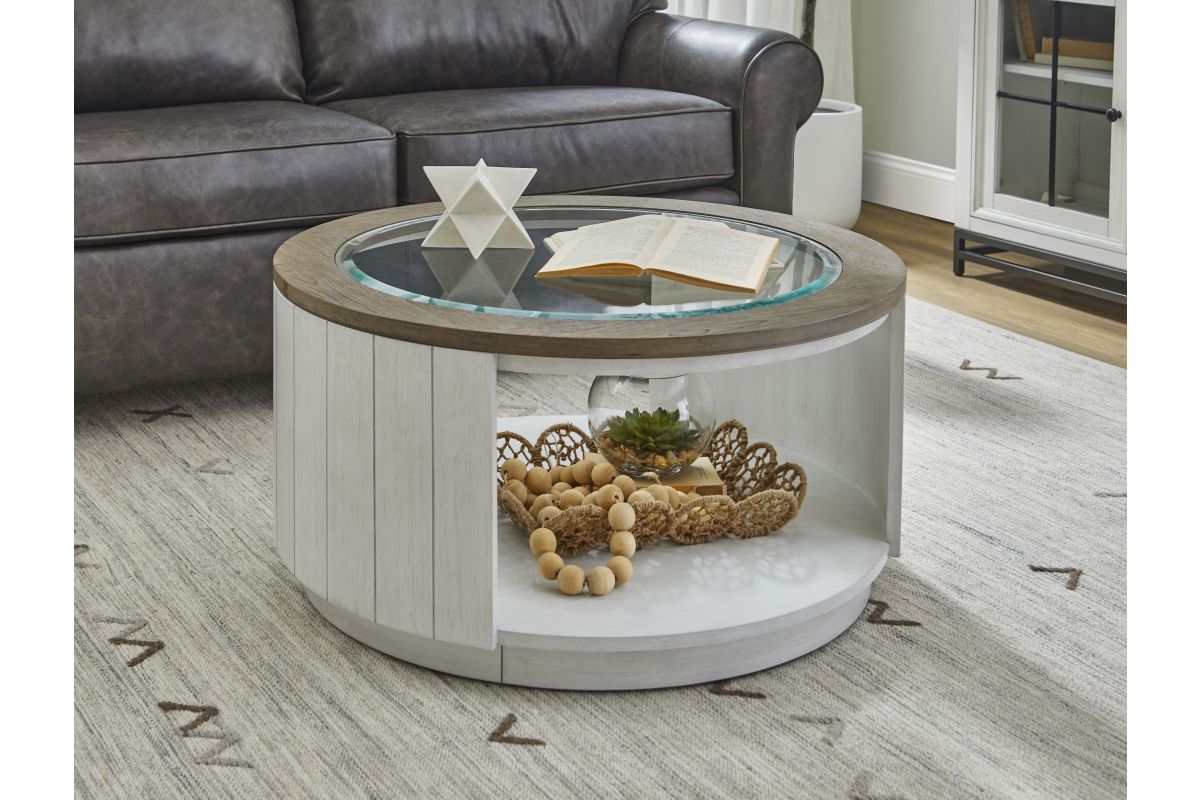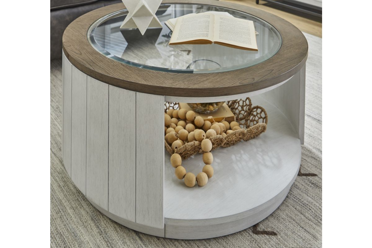 Create a cozy ambiance full of casual charm in your home with the Melody round end table. Bringing a timeless warmth with cottage-inspired design elements and a beautifully soft, weathered look, this table features an open design and adjustable shelf for storage and display versatility. Enchanting details include a distressed white base with an inlaid gray parquet top. Pair it with other Melody furnishings for a perfectly coordinated look. Exceptionally built with solid wood construction, the Melody round end table is well-crafted to offer years of lasting enjoyment.