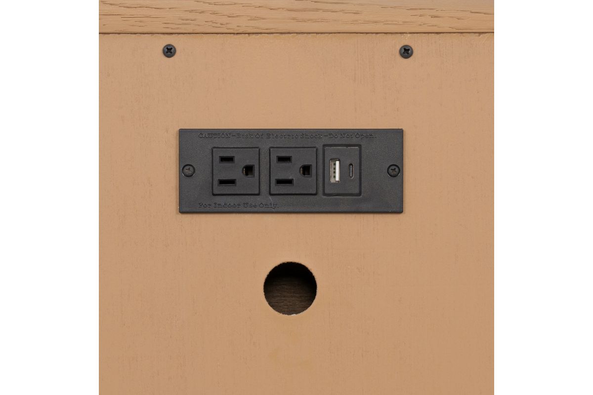- Power outlet with USB-A and USB-C ports hidden on the back