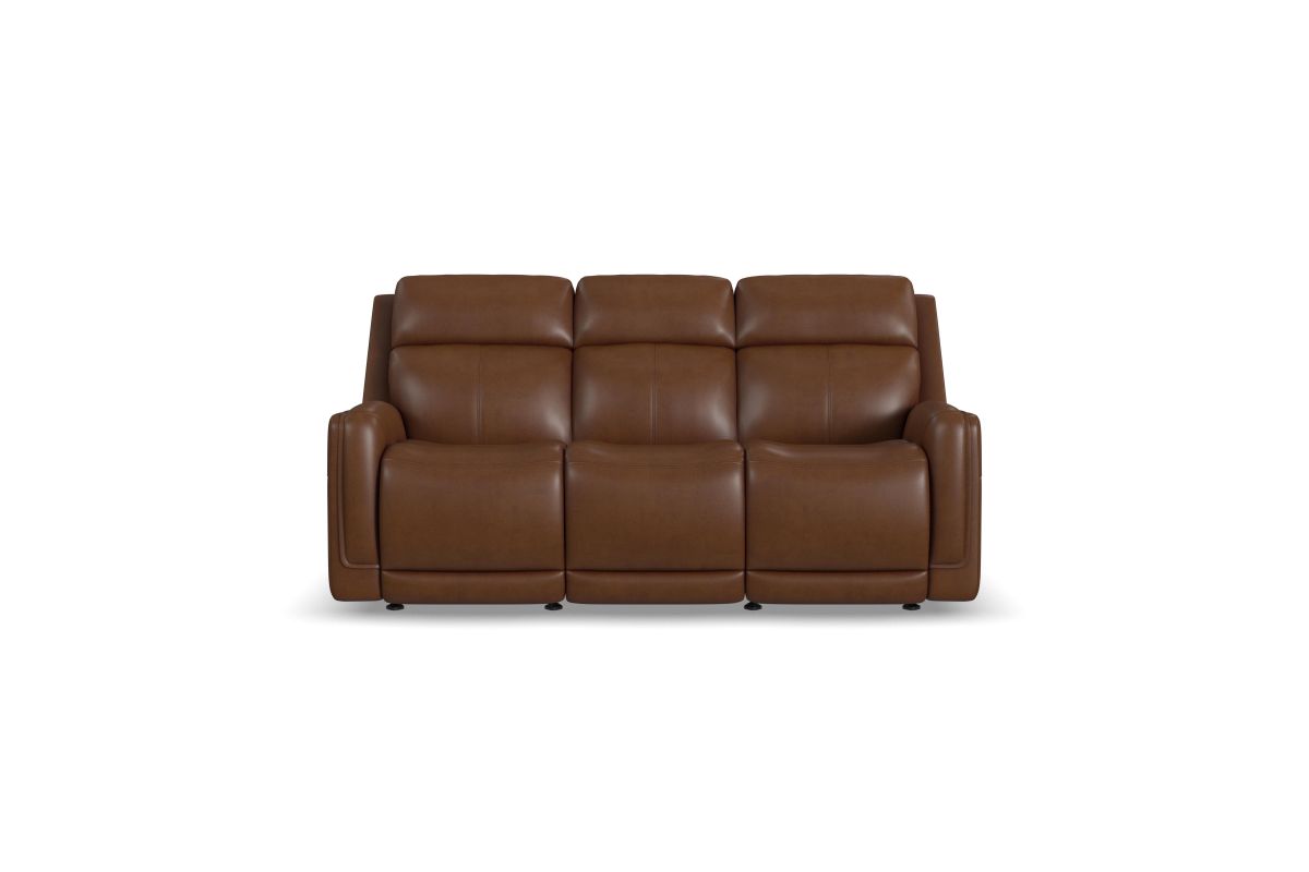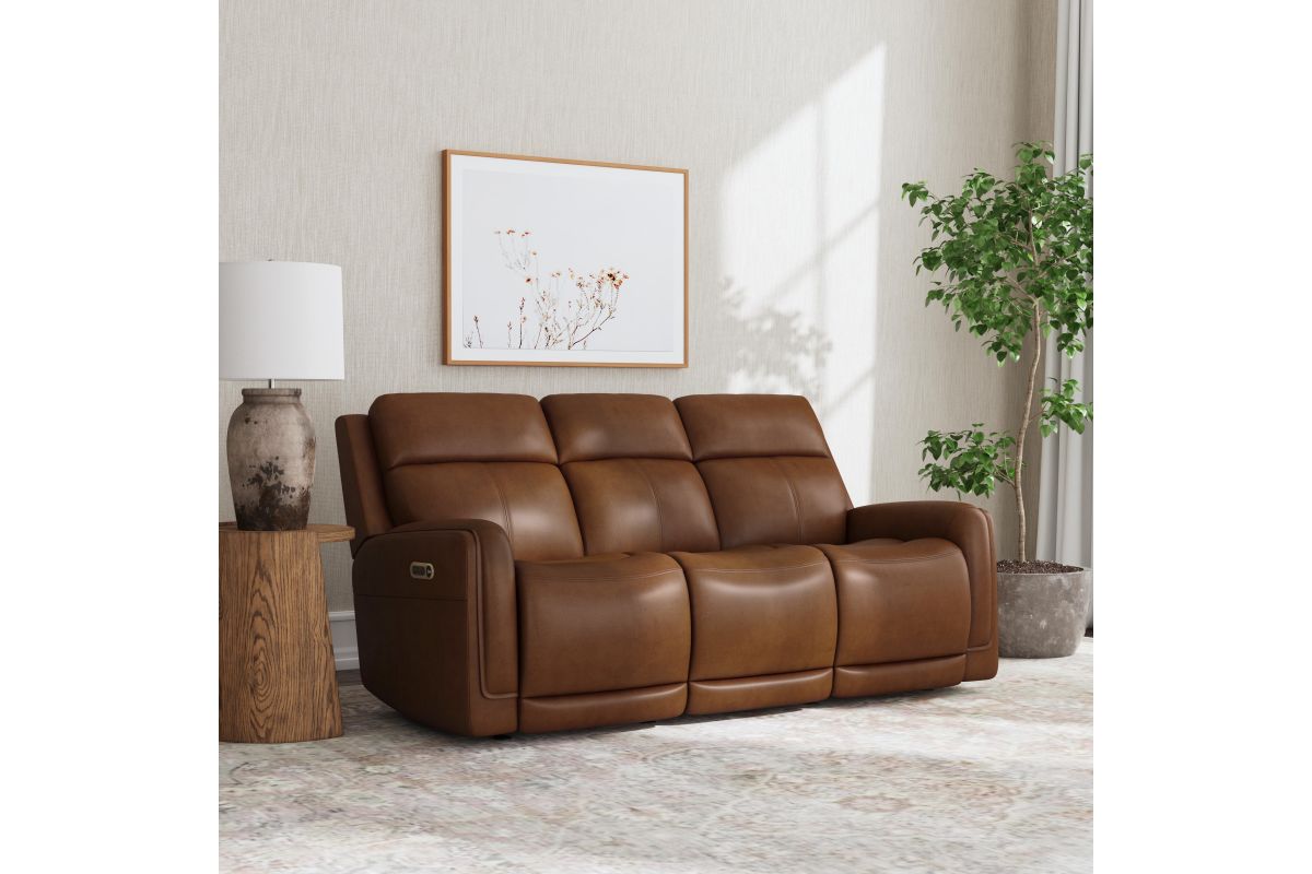 Bring your living room to the next level with the sleek, innovative Alister power gliding sofa. This transitional style sports sleek curves upholstered in your choice of luxurious top-grain leather. A step above typical reclining, these gliding seats provide a smooth, versatile, and unique experience. The ultimate in futuristic comfort, this sofa includes a drop down back cushion with two cupholders, a wireless charging pad, and USB ports to keep your devices charged and within reach. Kick back in the Alister, the future of relaxation.