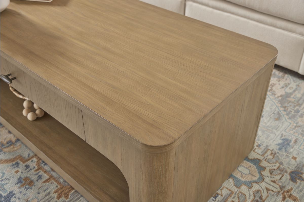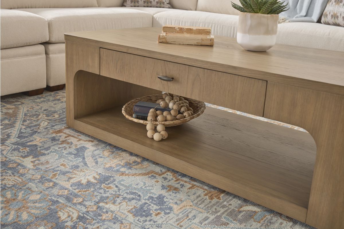 Simple geometry creates a look of timeless elegance for your living space with the Normandy rectangular coffee table. Inspired by European architecture, this coffee table offers a minimalist silhouette featuring an inviting, warm driftwood finish. Designed for both style and functionality, it includes a convenient storage drawer to keep your essentials organized. Crafted with sustainability in mind, this Normandy coffee table is comprised of FSC-certified wood with a scratch-resistant finish for added durability. Standing on a dignified, strong frame, this piece is sure to be a conversation starter.