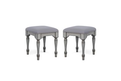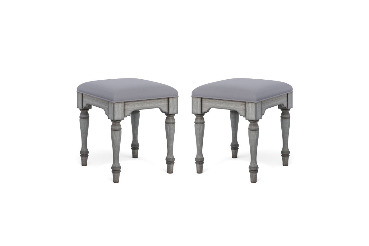 Comfortably prop up your feet in cottage-inspired style with the Plymouth ottoman. Featuring a distressed graywash finish and turned legs for a charming vintage look, this ottoman is upholstered in a soft, easy-to-clean coordinating fabric—making it ideal to use for impromptu seating when needed. Conveniently store the ottoman under the coordinating Plymouth sofa table when not in use. Sold as set of two.