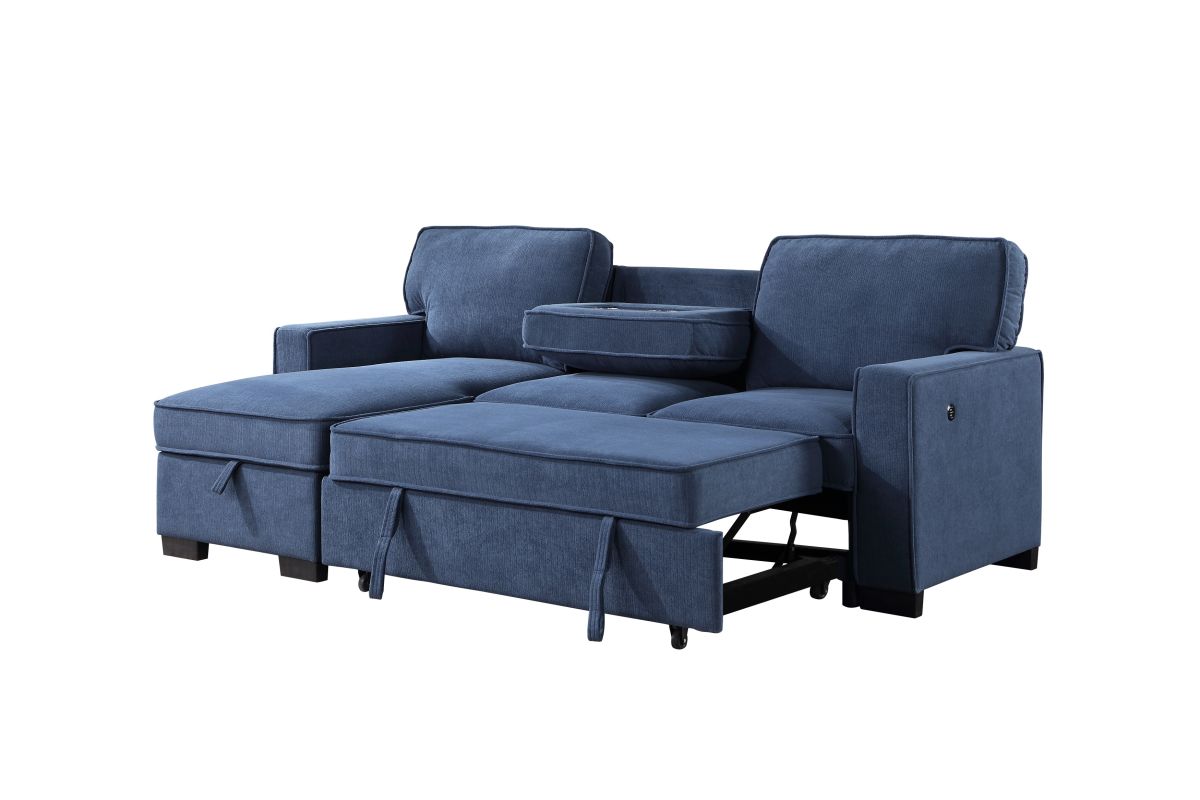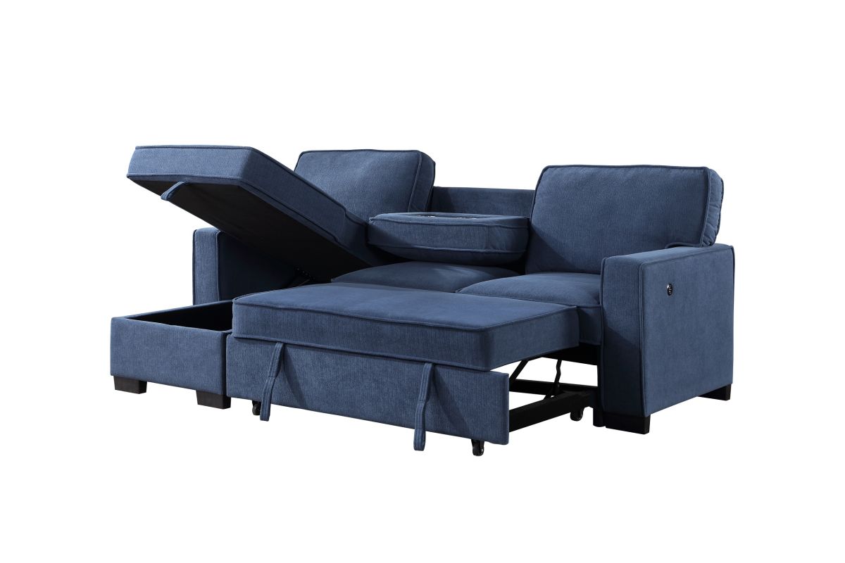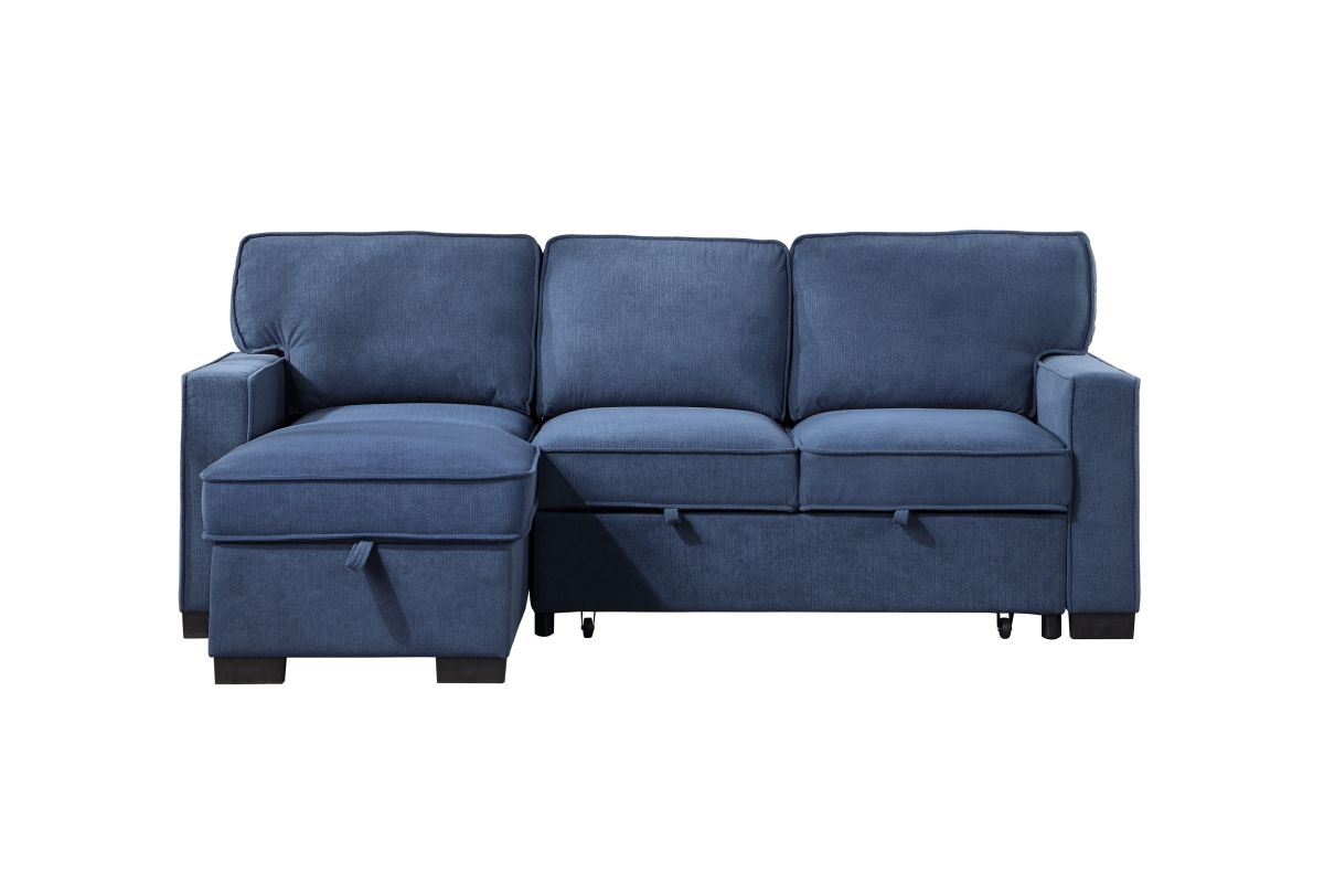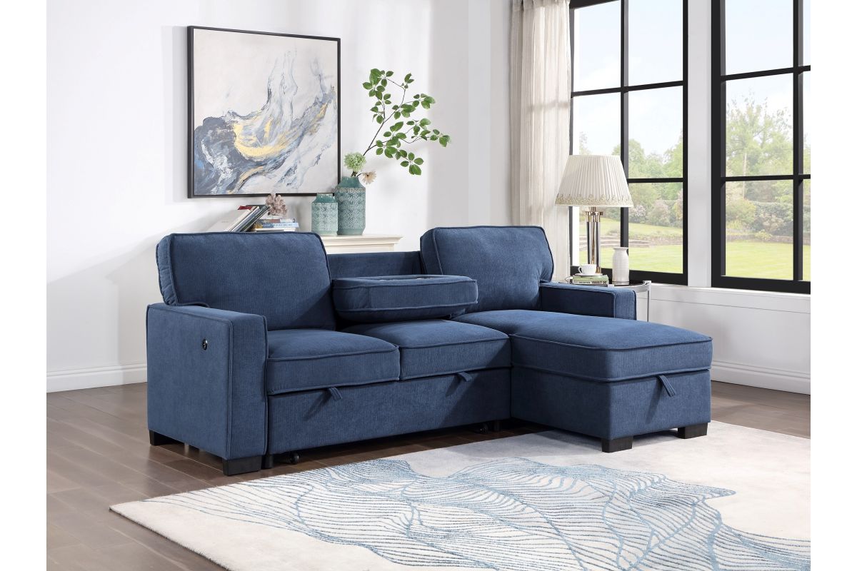 Designed for both style and versatility, the Fila sectional features clean lines, plush cushions, and a striking blue upholstery that adds a modern touch to any room. Its spacious seating provides everyday comfort, while the built-in sleeper easily transforms your living space into a guest-ready retreat. Crafted for durability and convenience, this sectional blends contemporary design with practical functionality.